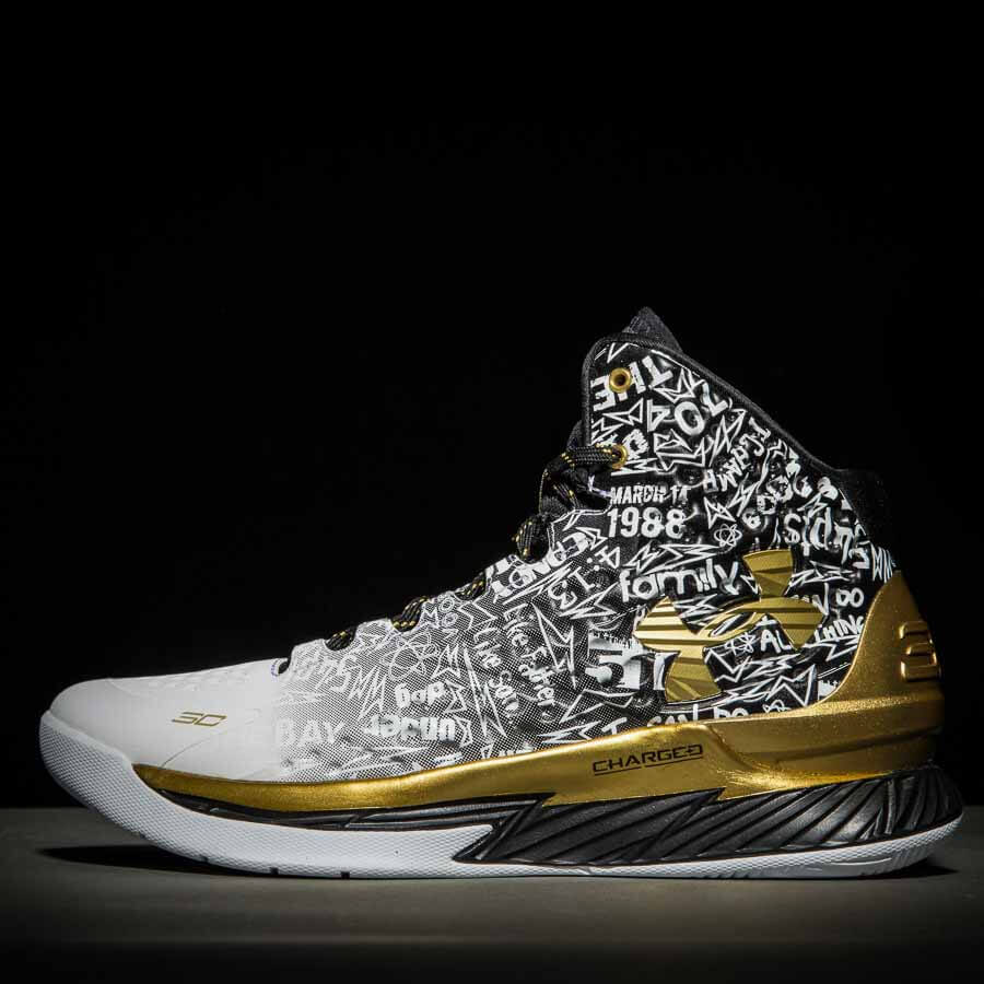 歷經著用 Anatomix Spawn 與 Clutchfit Drive 的時期後,Stephen Curry 終於迎來個人簽名系列誕生。Under Armour 在 2015 年正式發表了 Curry One,導入全新科技為品牌籃球領域的當家球星打造第一代鞋款,設計團隊以科學化的測量方法取得鞋面與足部在運動過程中的壓力分佈數據後,以全新開發的 Anaform 質料結合網布組成鞋身,輕量化的同時保有縝密包覆感與足夠的支撐強度,而中底 Micro G 搭配 Charged Cushioning 的做法主要是把不同密度之材質整合分佈在所需位置,打造完備性能。UA Curry One 在細節設計及配色方面也挹注他的個人信念於其中,鞋舌內標上節錄自聖經的 I CAN DO ALL THINGS. 字句正說明了一切,該賽季 Stephen Curry 也展現出巨星級身手,首度榮獲例行賽 MVP 獎項並為舊金山灣區抱回睽違 40 年的冠軍金盃。