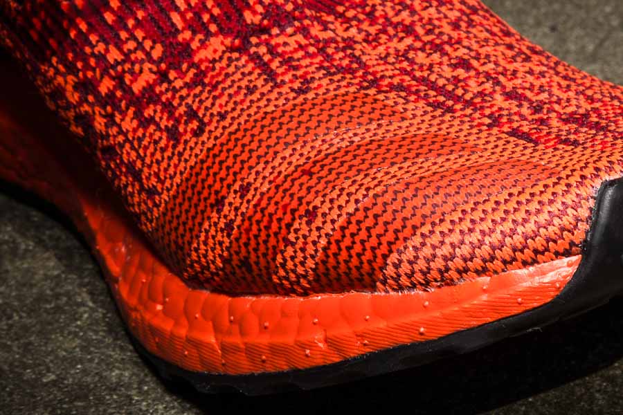 相信大家都很好奇不是說染料會影響到彈性,那麼究竟是如何達成這樣的革新呢?仔細觀察可以發現,Color BOOST 並非整塊染上顏色,而是在表層用最新技術將顏色滲入,在吹製過程中即已完成上色,據官方說明,顏色並非僅有表面,因此在使用上不需擔心正常使用下的磨損或是色落會造成美觀的問題,性能當然也沒有降低,維持著 BOOST 給人一貫的鮮明回饋,目前雖然僅有紅與黑兩個新色,但不妨期待後續可能推出的全新色系。