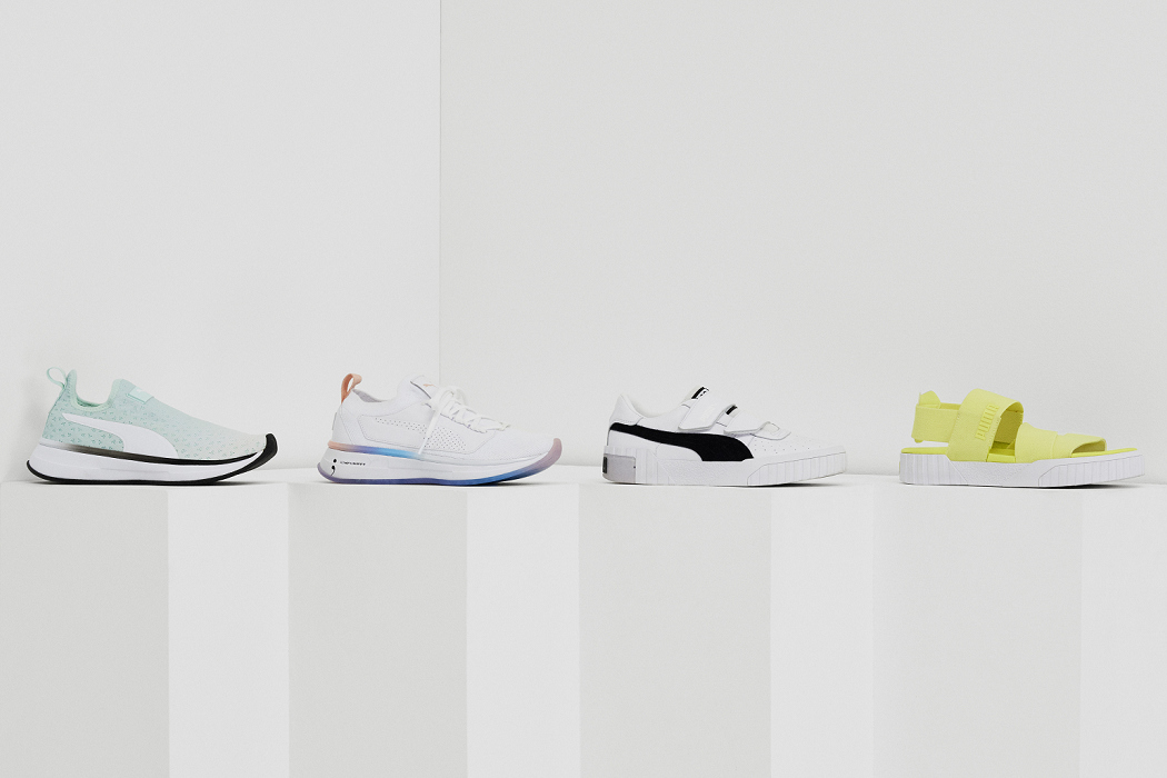 SG x PUMA 春夏聯名鞋款特別推出主打舒適的 SG Slip-On,將傳統鞋帶拋諸腦後,以輕鬆穿脫為設計重點,包含晨曦及日出兩款漸層新色。另外將經典田徑跑鞋結合女力風格而成的新款 SG Runner Ice,採用輕盈粉嫩色彩讓妳瞬間成為焦點;而女孩鞋款 PUMA Cali 也加入了此次聯名行列,SG x Cali 以魔鬼氈取代鞋帶,採用皮革混搭異材質,推出黑白、綠及白三款春夏主色。