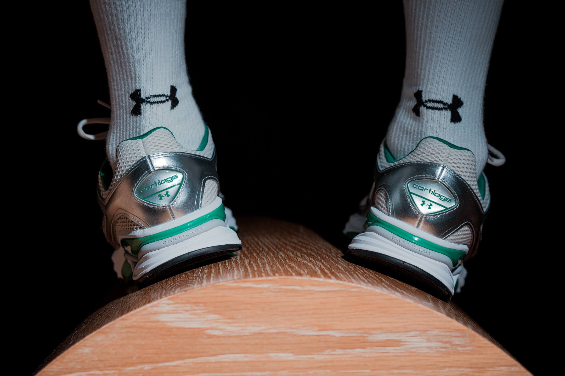 關於舒適,拍攝當天換了 UA Echo 與 Apparition Tech 兩款休閒鞋,有別於比賽鞋特別要求包覆性,日常用鞋他喜歡穿起來順順的、有支撐度讓腳不用特別出力的感覺,像 UA Echo 就有滿足到其要求。