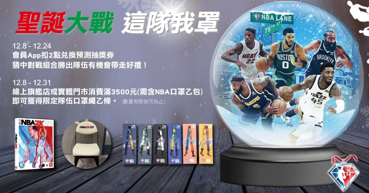 官方新聞 / NBA Store Taiwan 推出「聖誕大戰預測活動」神預測就有機會拿 NBA 2K22、獨家限定座椅等好禮