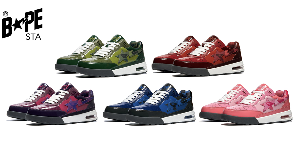 繼「CLASSIC REBORN」系列發佈之後,BAPE® ROAD STA 於本季解鎖新代靈感鞋作。高調全漆皮鞋身包裹鮮艷搶眼的 COLOR CAMO 組合配色,象徵權威的 STA 流星側標則賦予 BAPE® 簽名式迷彩圖紋;鞋後跟內置可見緩衝氣墊,確保絕佳的耐磨表現力。狂想色彩加持漆皮配置,無庸置疑,這組活力盛放的大熱鞋款將令你自由詮釋鮮明個性。