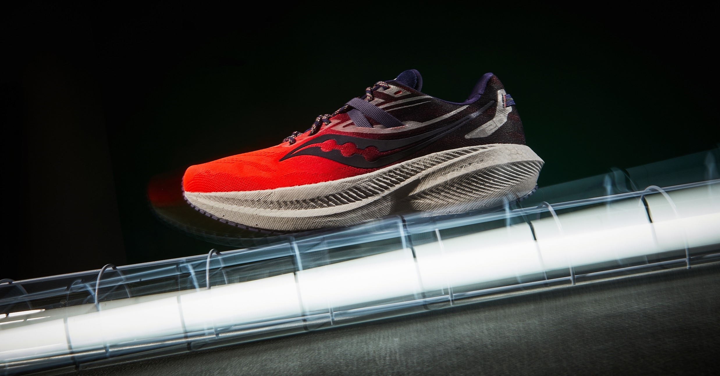 Saucony Triumph 跑鞋首發於 2003 年,是一支主打高緩震的產品線,中底用料從最早 3D Grid、ProGrid 再到 Power Grid…等等圍繞著名為 GRID (Ground Reaction Inertia Device) 的網格狀緩衝結構在發展,GRID 科技的原理有點類似網球拍擊球的甜蜜點,最初是策略性地放在後跟來承托腳跟落地時時的衝擊。