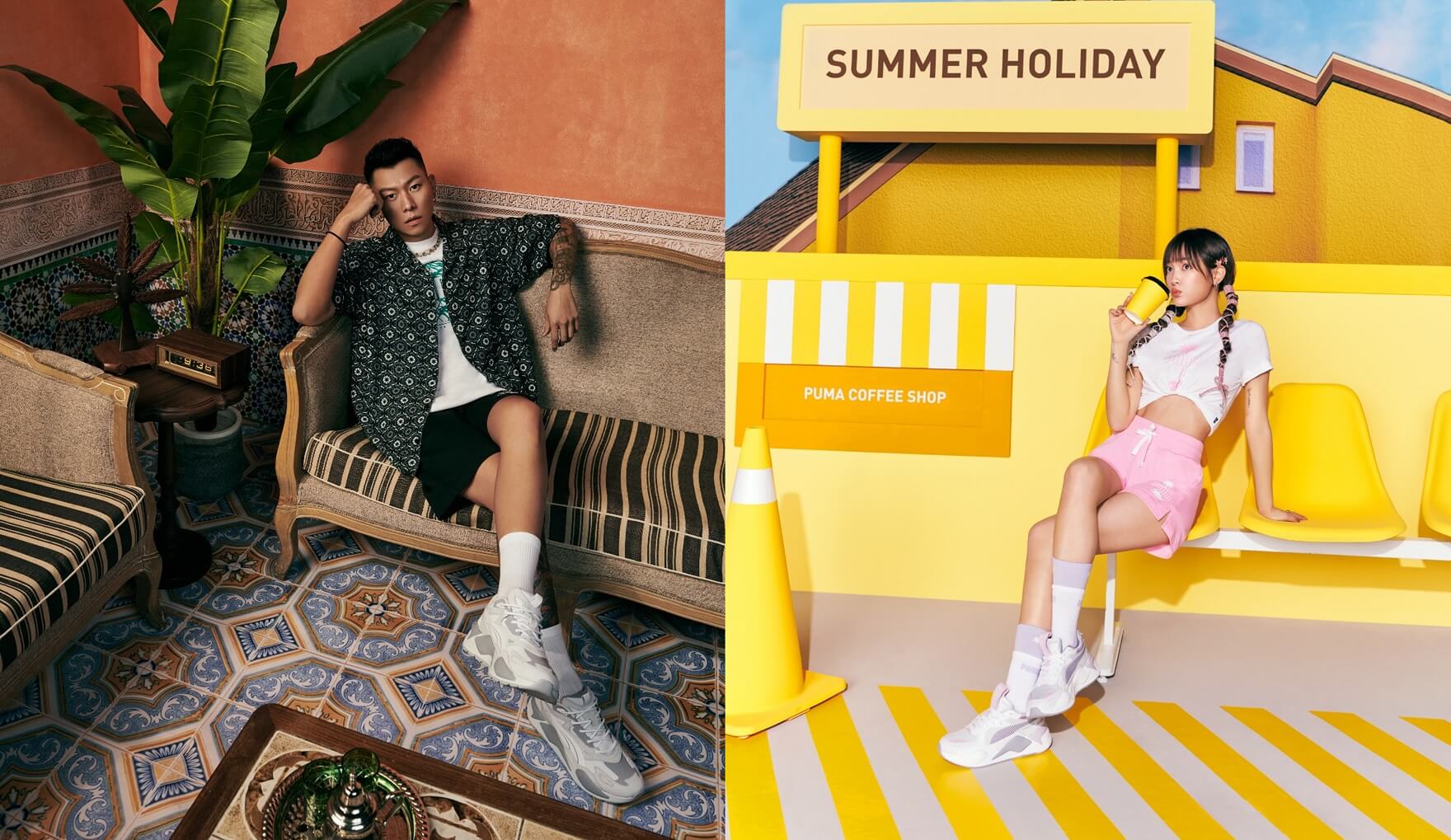 瘦子、王淨實著 PUMA Summer Holiday 夏日海島假期系列服飾,腳踩前衛復古老爹鞋 RS-X,全系列新品即日起正式登台,除了在各大 PUMA 門市與百貨專櫃外,也可直接在 PUMA 台灣官方購物網站輕鬆入手。