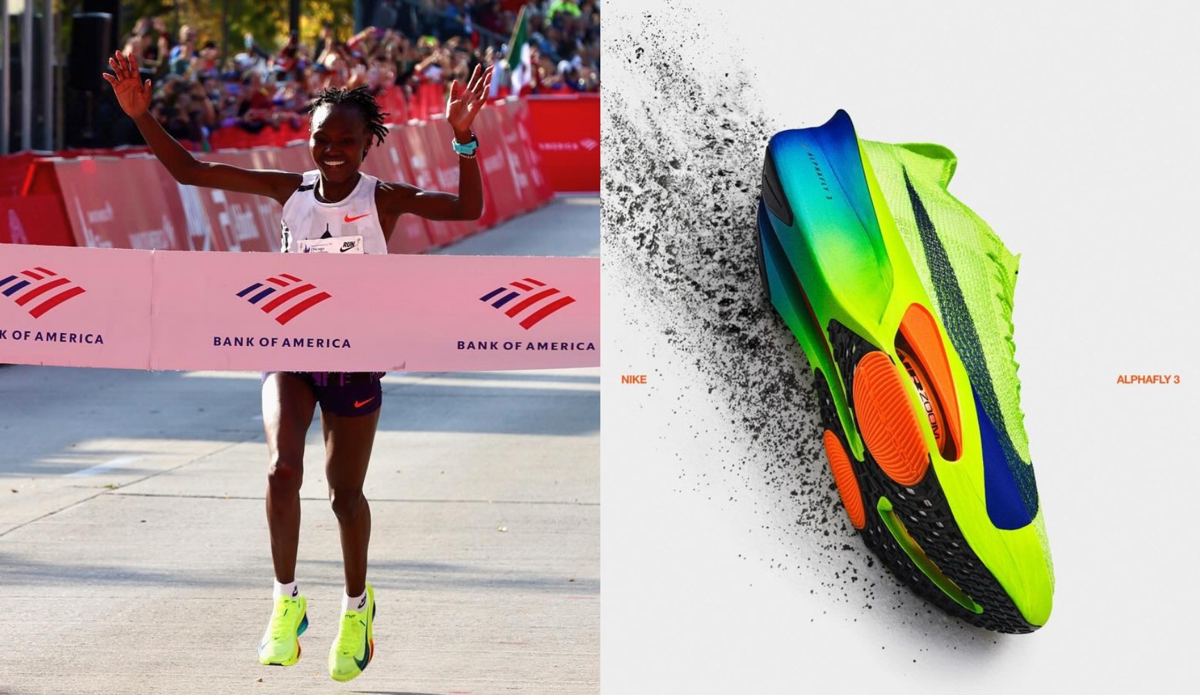 今年是 Ruth Chepngetich 第三度在芝加哥馬拉松奪冠 ,前兩次為 2021 年及 2022 年的二連霸,而她今年的 2:09:56 成績,改寫了衣索比亞選手 Tigst Assefa 在 2023 柏林馬拉松創下的 2:11:53 紀錄,一舉把最速紀錄縮短了將近 2 分鐘!這也是連續兩年有跑者在芝加哥馬拉松創下世界紀錄,去年是男子組的 Kelvin Kiptum 以 02:00:35 的成績奪冠,成為第一位踏進 2 小時 01 分領域內的跑者。很剛好的是,去年 Kelvin Kiptum 打破世界紀錄也是穿著 Nike Alphafly 3。