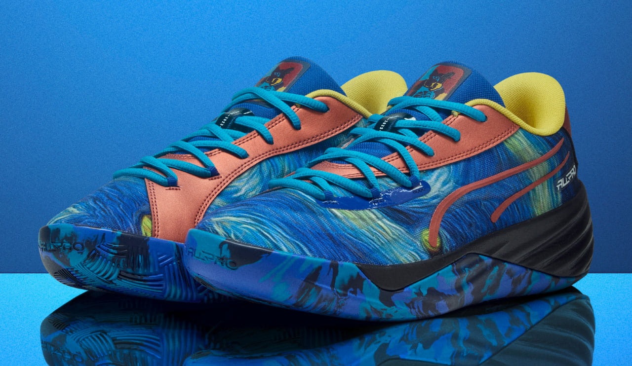 All-Pro NITRO™ Dylan Exhibit 出自 ‘PUMA Hoops Museum’ 系列,Dylan 是 PUMA Hoops 吉祥物的名字,Dylan Exhibit 好比牠的展覽,一系列鞋款及服飾致敬了世界名畫,比如《星夜》、《吶喊》、《創世紀》…等等。