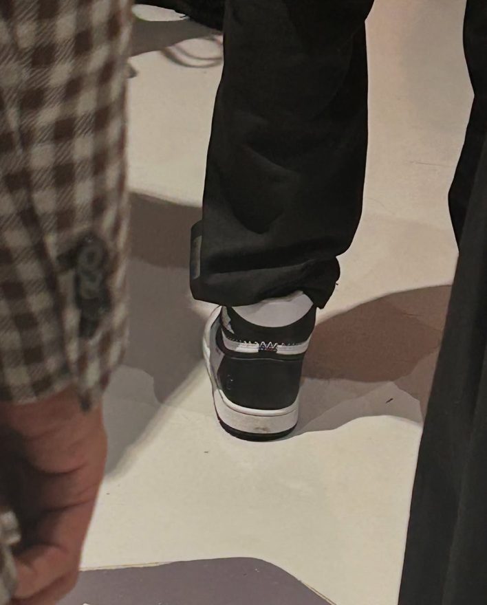 在 4 月中的 REFLECT 攝影展中,藤原浩著用一雙未曾曝光的 Air Jordan 1 High。整體由白與黑組成,分色形式與常見的 Air Jordan 1 不同,在鞋頭中央、Nike Swoosh 以及後跟上下兩塊裁片使用黑色皮革,其餘部位則為白色皮革,視覺效果接近 Fragment x Travis Scott x Air Jordan 1 High 與 Air Jordan 1 ‘Stealth’ 等設計,類似過往鞋友們俗稱的「反轉」配色。可能是由於用色極簡,首次亮相時並未引起太多的關注,直到上週韓國媒體 Le Syndrome 拍攝到相關畫面,大家才意識到這是 Fragment x Union x Jordan Brand 三方聯名的第二彈。