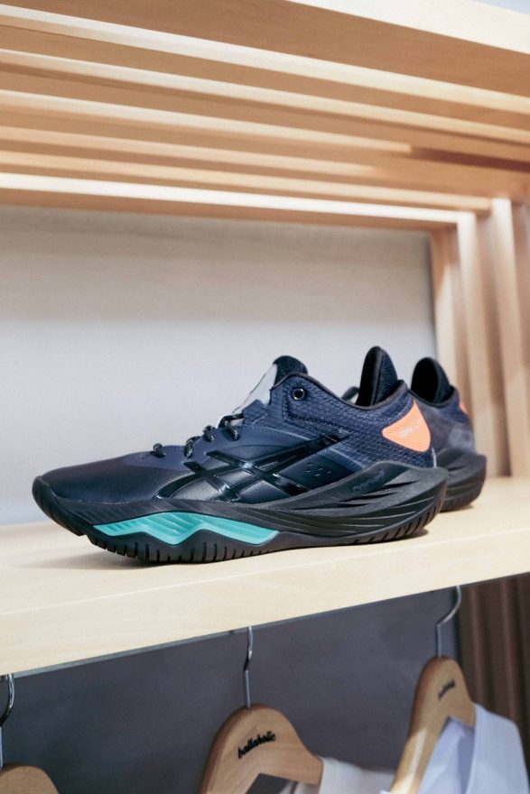 ballaholic 東京本店藏身在鬧中取靜的小巷子內,說難找也不難,跟著 Google 地圖走滿順利就找到了,此番前去店內販售有定番球衣、球褲等單品,與灌籃高手聯名的短 tee 架上還有販售,另外聯名鞋款 ASICS x ballaholic NOVA SURGE LOW 黑色、也就是「夜王」盧峻翔今年封王戰穿的那雙,也還有現貨在店內。
