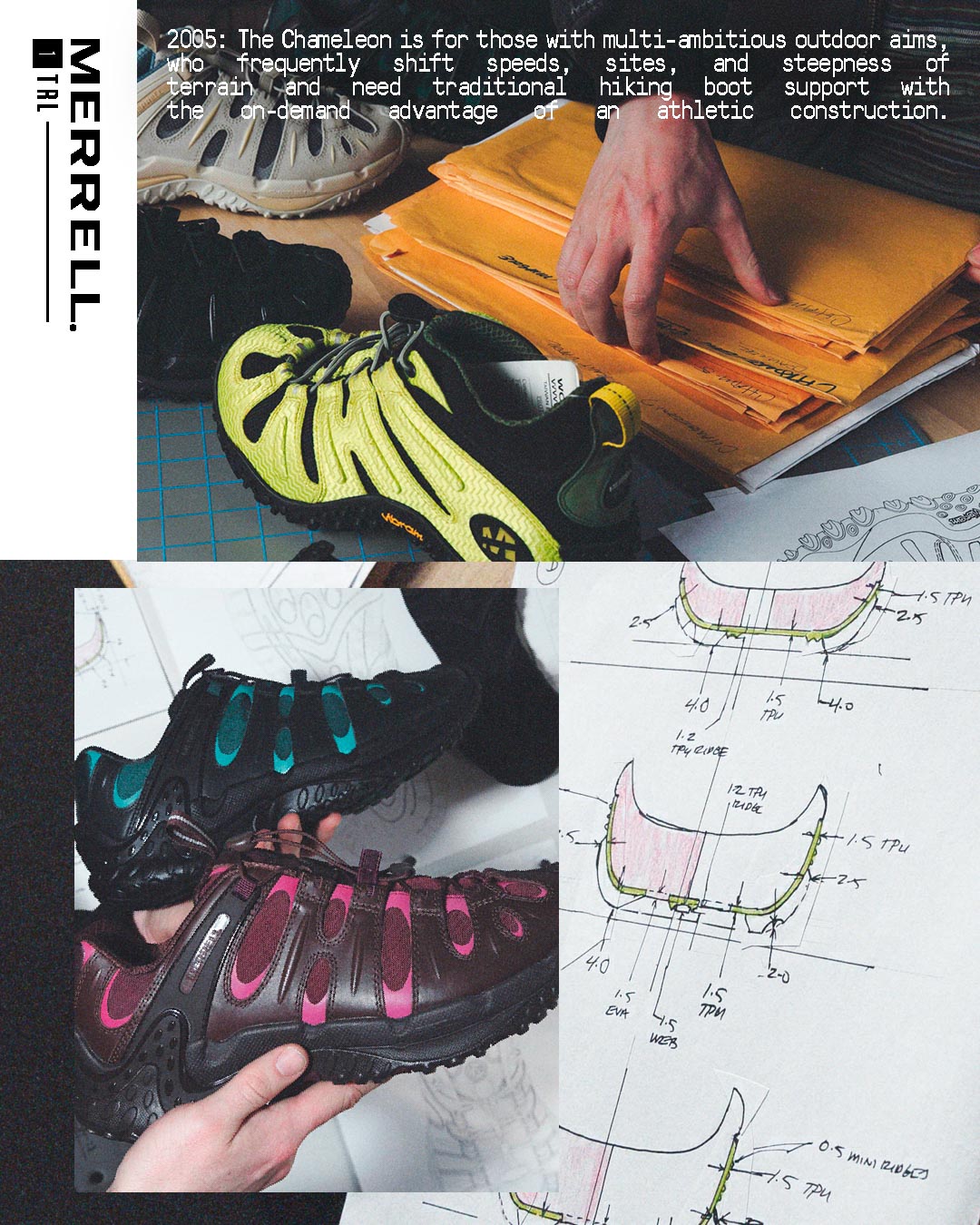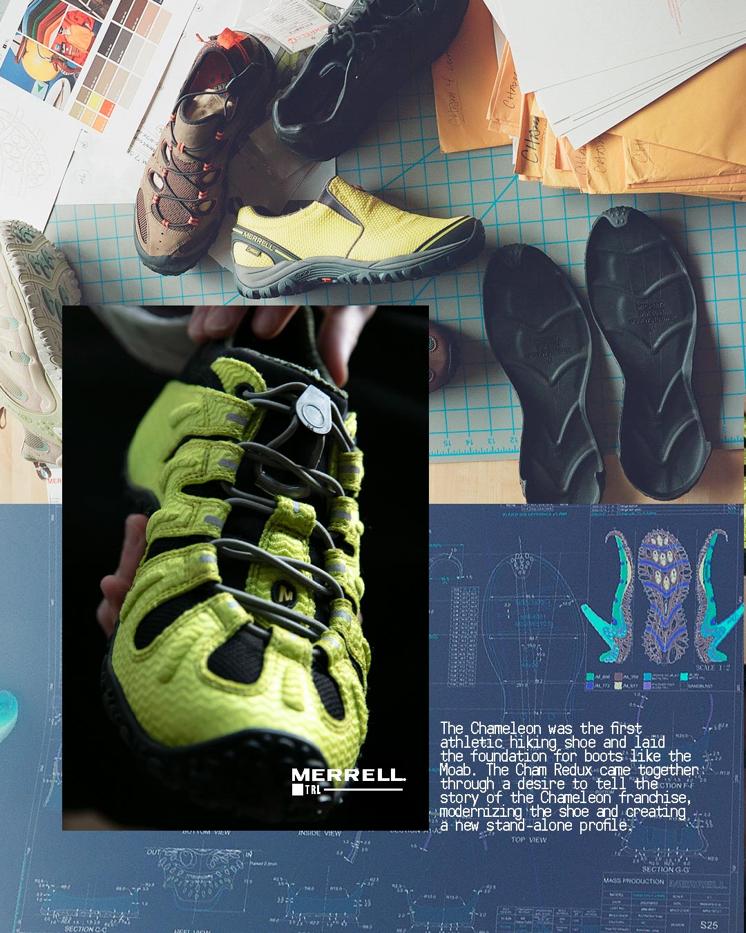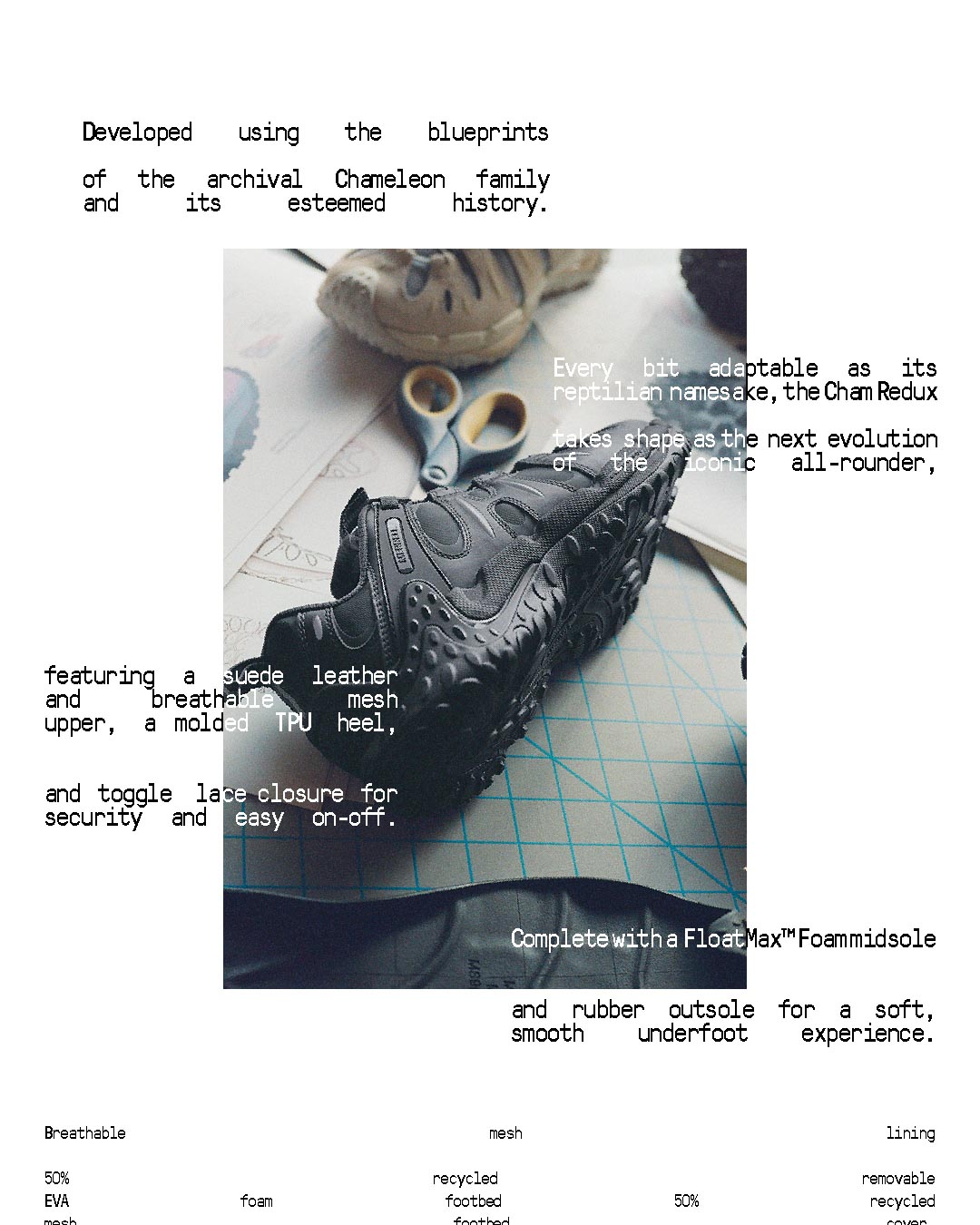 - Cham Redux:重新詮釋自2001年「Chameleon」系列的經典設計,以模組化構造與現代戶外性能支援系統對應快速變動的使用情境。不僅是向過去致敬,也是一種針對未來生活方式的預示。