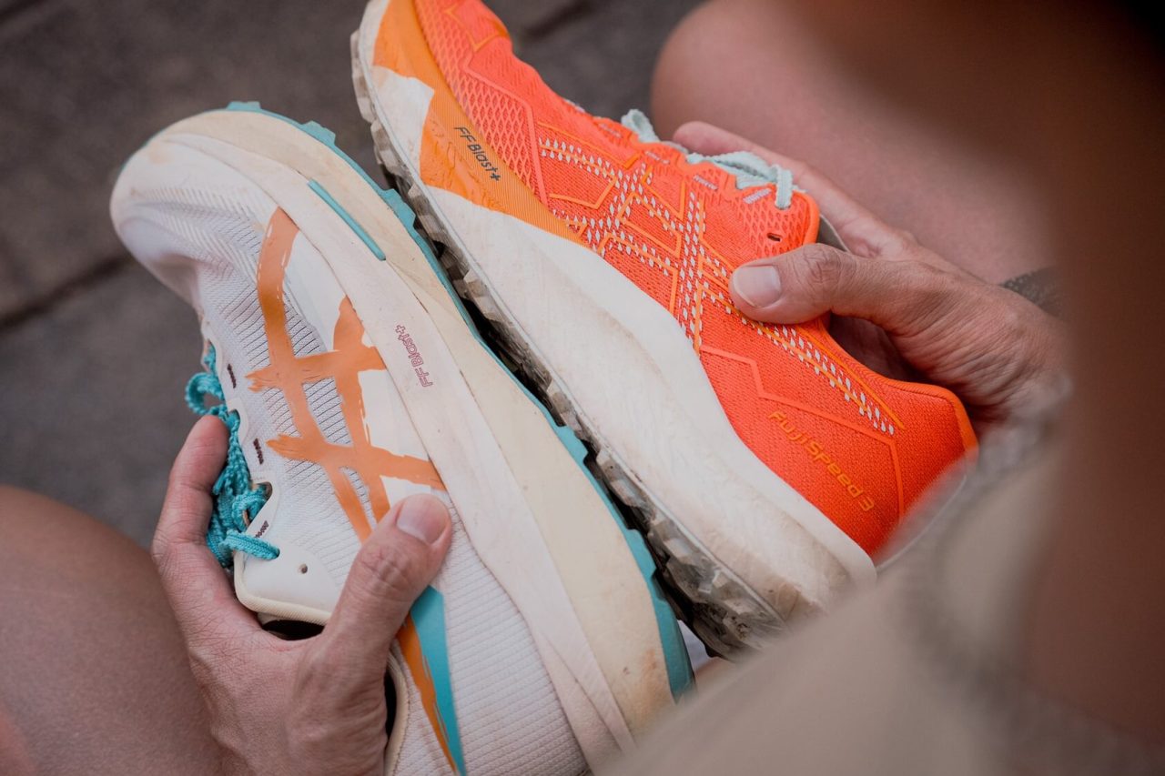 「進化幅度蠻明顯的,代與代之間都有馬上做改進。拿到 (FUJISPEED 4) 第一印象是外表變得更堅固,提供更好的保護性,中底足跟差 5mm 沒有改變,但緩震緩衝有顯著的提升。」講到對 ASICS 越野跑鞋的印象,仁豪教練先是點出代數更迭之間,總能讓他有感的變化,以這次 FUJISPEED 4 來說,雖然官方並未提及雙層 FF BLAST+ 中底相較於前一代是否更厚,但腳感是最直接的驗證,仁豪教練說 FUJISPEED 4 在緩衝感這部分有顯著的提升;另外合腳程度也是他會推薦 ASICS 越野鞋的原因之一,相較於歐美系品牌,亞瑟士的鞋從楦頭設計到版型,都更適合臺灣人普遍的腳型。