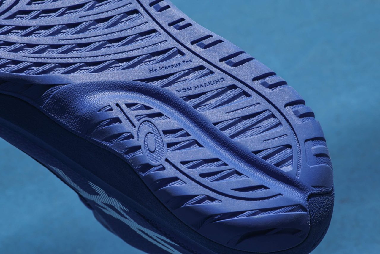 這次第三代延續前掌 X 字形切割,切入時能在啟動、急煞頓點、轉向之間迅速動靜切換,而在中後段,ASICS 多開出了一道引導式凹槽,搭配鞋尖、後跟斜角的上翹幅度相輔相成,隨著重心轉移讓步法更自然無礙,把節奏掌握在自己手中。外底看似僅有局部強化,但其實是從啟動到推蹬向前都縝密考量到的一整套邏輯,全面調校。