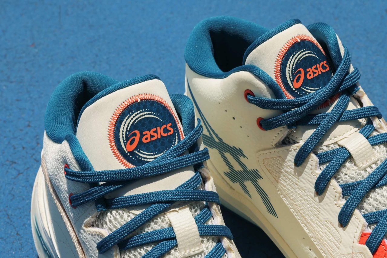 視角移到外底邊緣,能明顯看到中前段有兩塊較突出的 M 型外擴角,籃球鞋常見類似設計,針對橫移時腳掌觸地瞬間的熱點把面積擴大,一方面更快讓刻紋觸地完成急煞,再來是作為施力支點,迅速往反方向發力。ASICS 綜合了觀察球員切入及防守時腳步的變化,把外擴角前移併調整為雙段式,不難嗅出更加強調前掌應用的企圖,把靈活性也考量進去,讓鞋子跟上穿著者的速度與變向幅度。