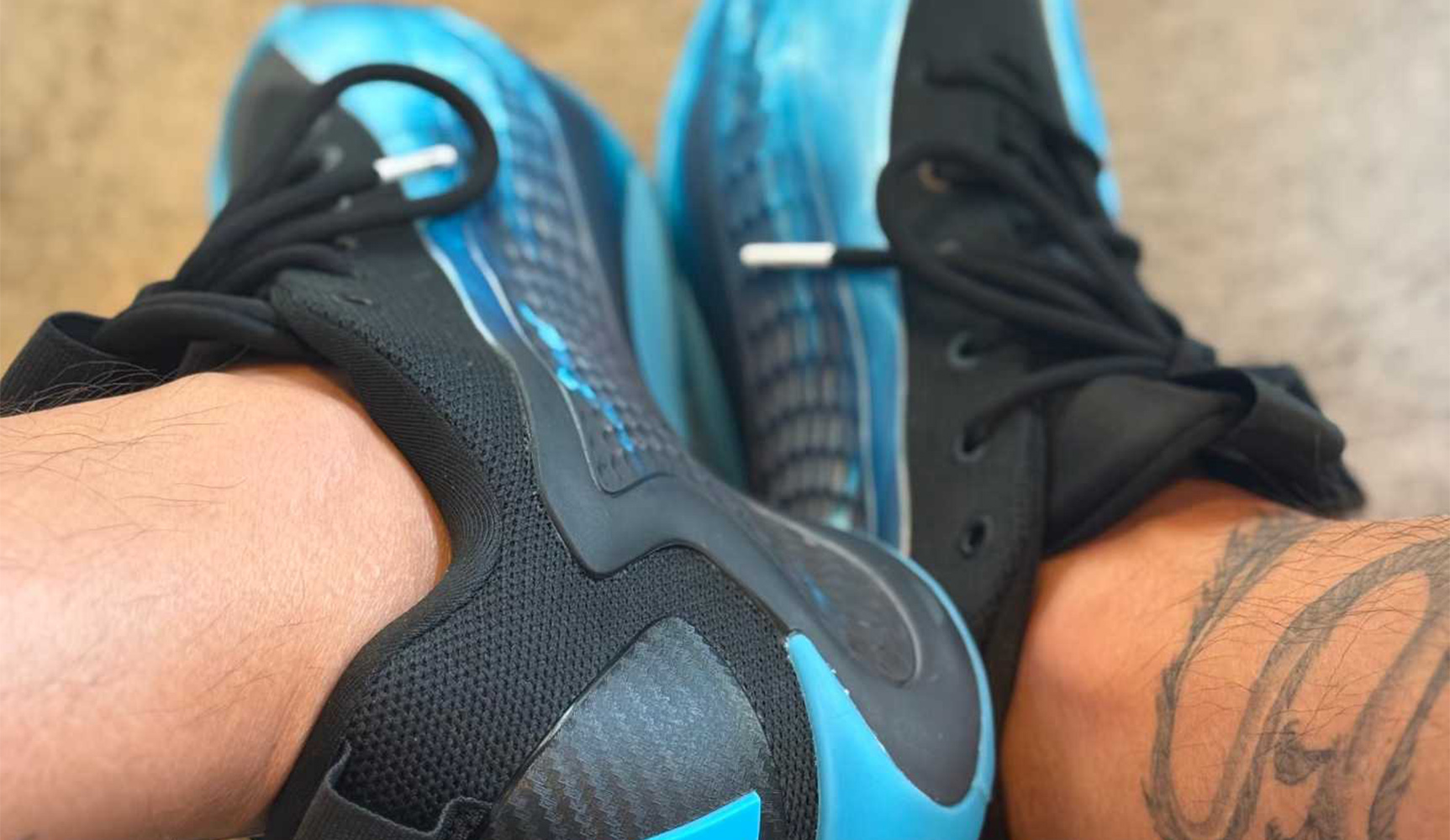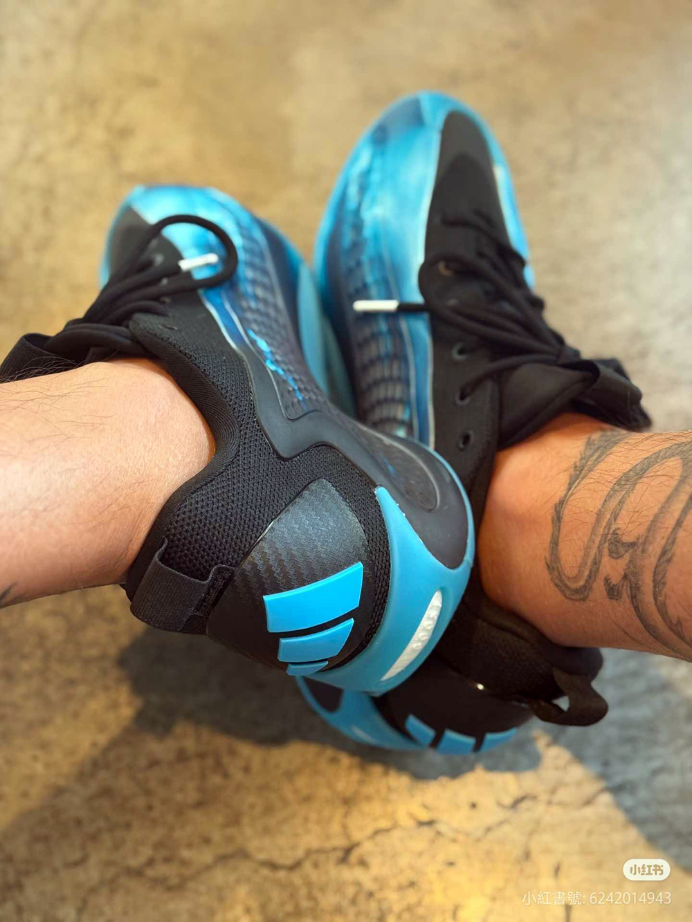 CLOT x Anthony Edwards 1 Low 以黑藍配色為主軸,並用藍色火焰作為聯名主題貫穿全鞋。藍焰圖案從兩側 TPU 前端一路延伸至後方,鞋墊上也可見到相同紋路;鞋舌拉環與鞋墊上標有雙方 Logo,凸顯聯名身份。此外, 配合 Anthony Edwards 本人偏好的搭配方式,隨鞋更附上了一組藍色鞋帶,與後跟 TPU 上的藍色 adidas 標誌相互呼應。