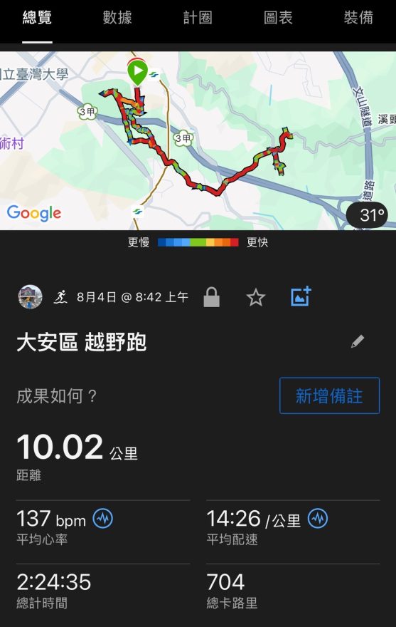 課表:長途騎乘後的越野恢復跑 10 公里 (富陽生態公園)