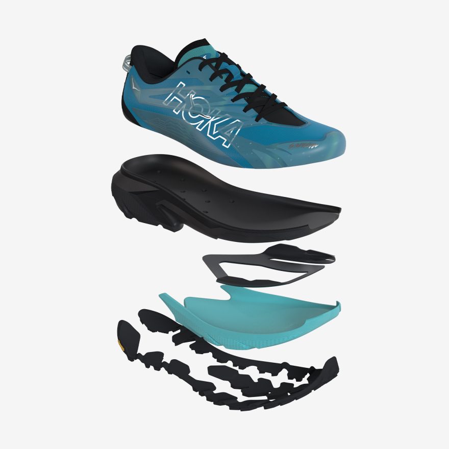 Rocker Integrity 科技是為追求里程與挑戰的越野跑者設計,這塊輕量、柔韌、具高抗拉強度的 TPU 板材,是穩定推進的關鍵角色,被放置在兩塊泡棉之間的前足位置;整體結構略微包覆中底前掌邊緣,能在蹬地時支撐前足,也使腳趾離地感覺更靈敏,每一步都能帶來有力的回彈感。另外,搭配雙層中底與 HOKA 招牌的 MetaRocker 滾動式弧形結構一起作用,能幫助跑者在長時間奔跑中維持穩定的步態,持續保持控制身體與跑步效率。