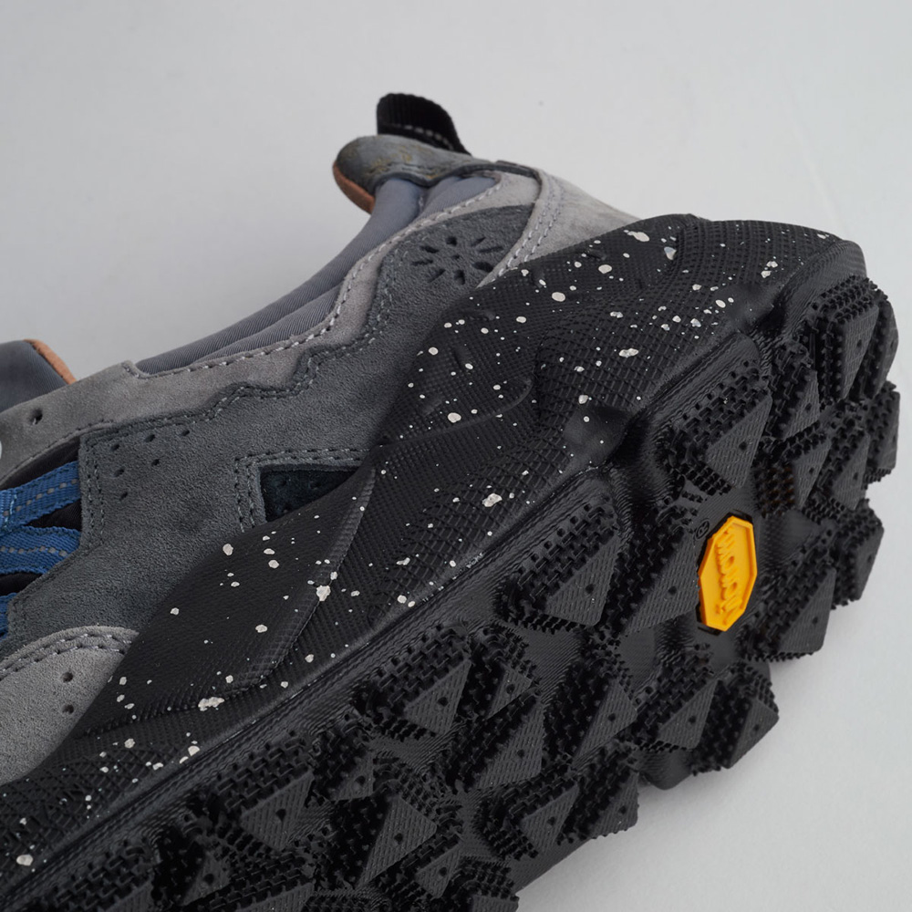鞋底則是搭載 Flower MOUNTAIN 原創的 Vibram Mega Grip 大底,沿用 YAMANO3 鞋款的三角形底紋造型,搭配顆粒紋路,提供卓越的濕地抓地力與耐磨性,讓使用者即使面對濕滑路面、泥濘小徑,也能保持穩定步伐。這樣的設計,使得此款聯名鞋不僅適合日常通勤,也可用於短程健行、戶外旅行。
