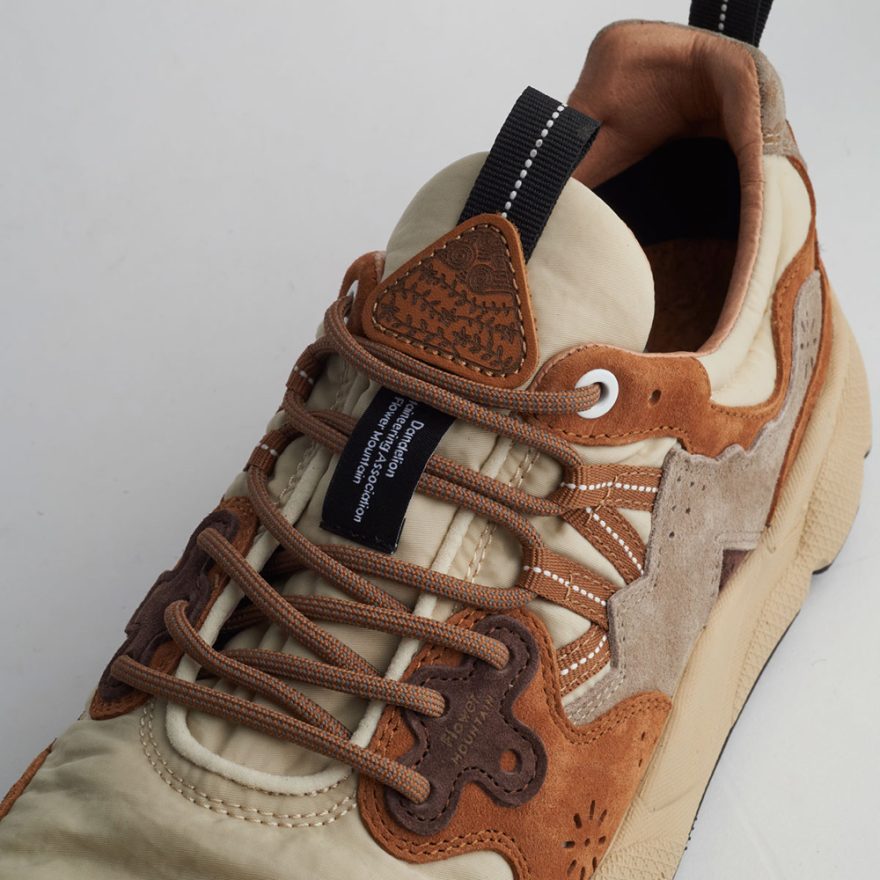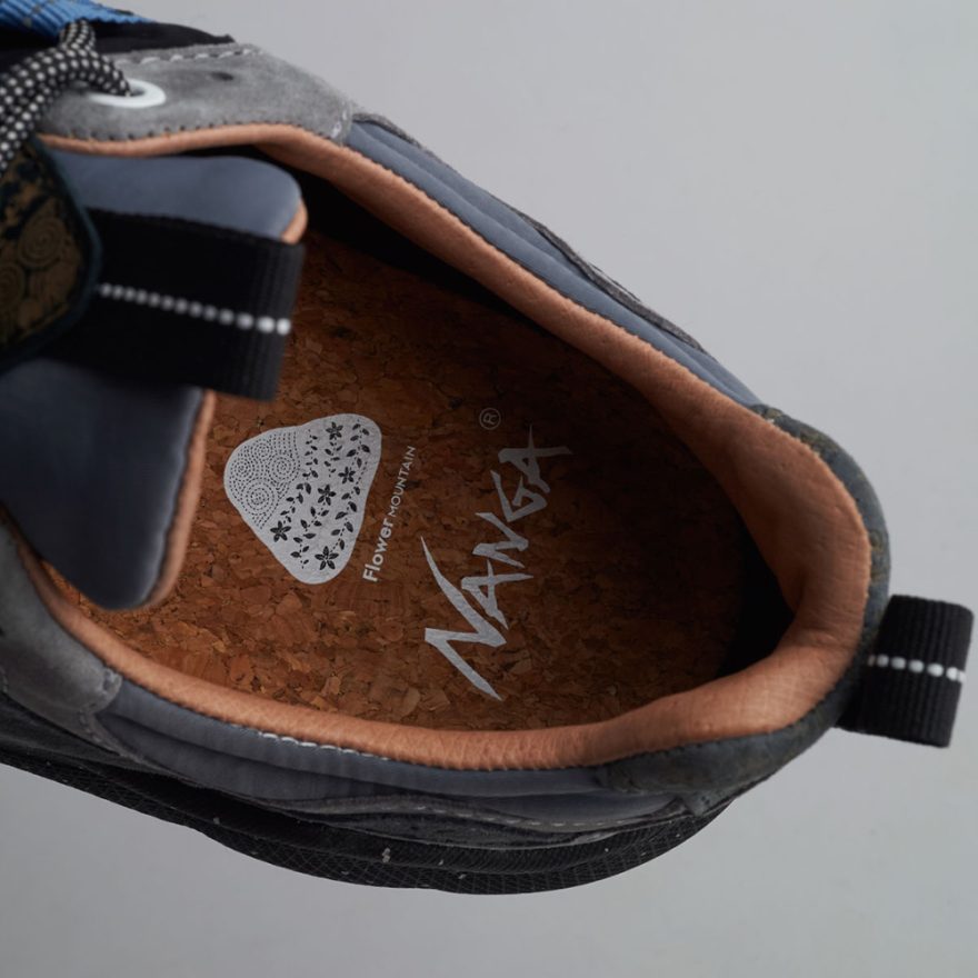 聯名款 YAMANO3 的鞋身線條模擬山脊輪廓,採用多層次拼接與材質對比,呈現山岳的堆疊感。鞋後跟放上 NANGA 的品牌標誌,與 Flower MOUNTAIN 標誌性的波紋中底結構相互呼應,在視覺上呈現絕佳的配合。