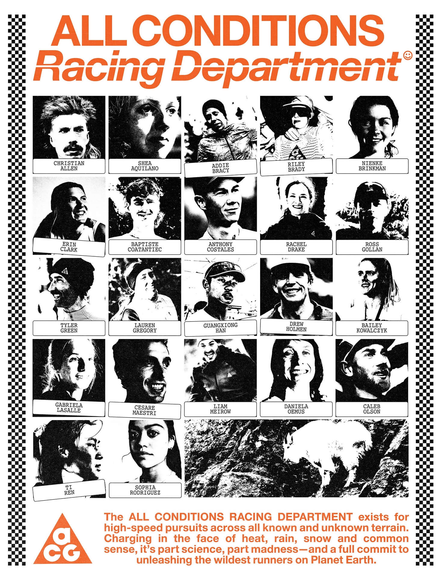All Conditions Racing Department 運動員們深入戶外實地:他們積極參與跑者社群、測試裝備性能,並不斷挑戰自身的勇氣與極限。