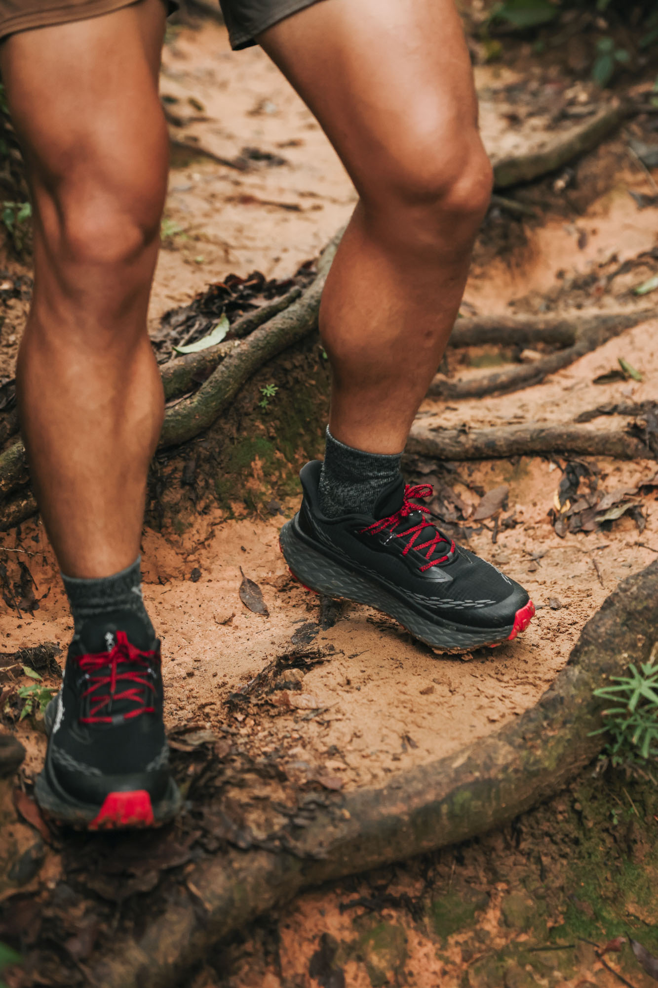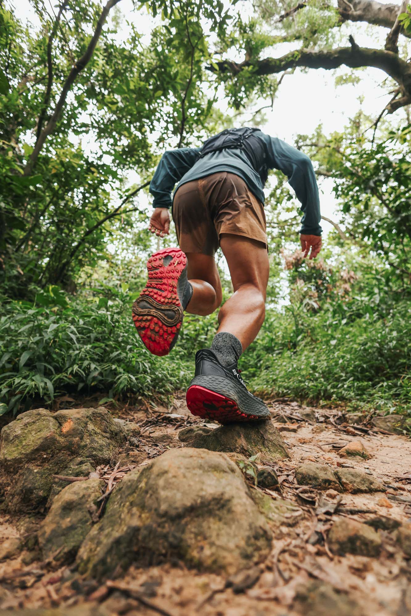 我選擇越野跑鞋最在乎的就是腳感,當我踩在技術地形或是下坡的時,必須要能夠清晰感受所經過路面的各種狀況,才能即時做出對應,畢竟,越野跑是在有著複雜生態的山林裡,而台灣山林地形又是其中數一數二複雜的,我們常會說如果能適應山林,國外的絕對沒問題。