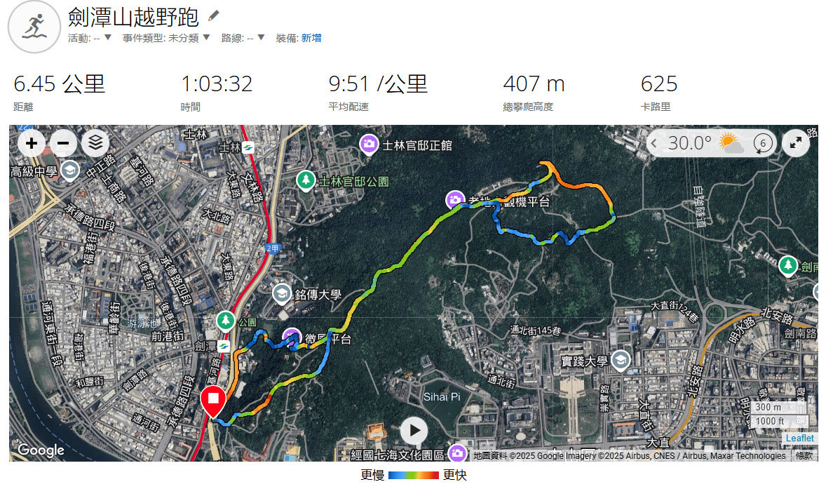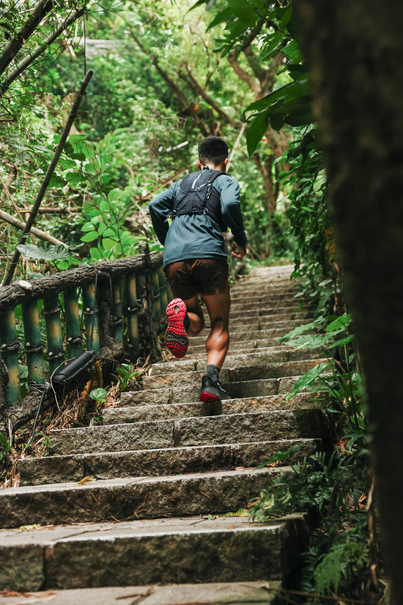 這次特別挑選了劍潭山與軍艦岩,這種包括了階梯上下坡、泥土路、柏油路面、技術地形下坡等,有著各種地形的山林來做測試,我的結論是,這是一雙適合各種地形的越野跑鞋,特別是柏油路、階梯等硬地面。