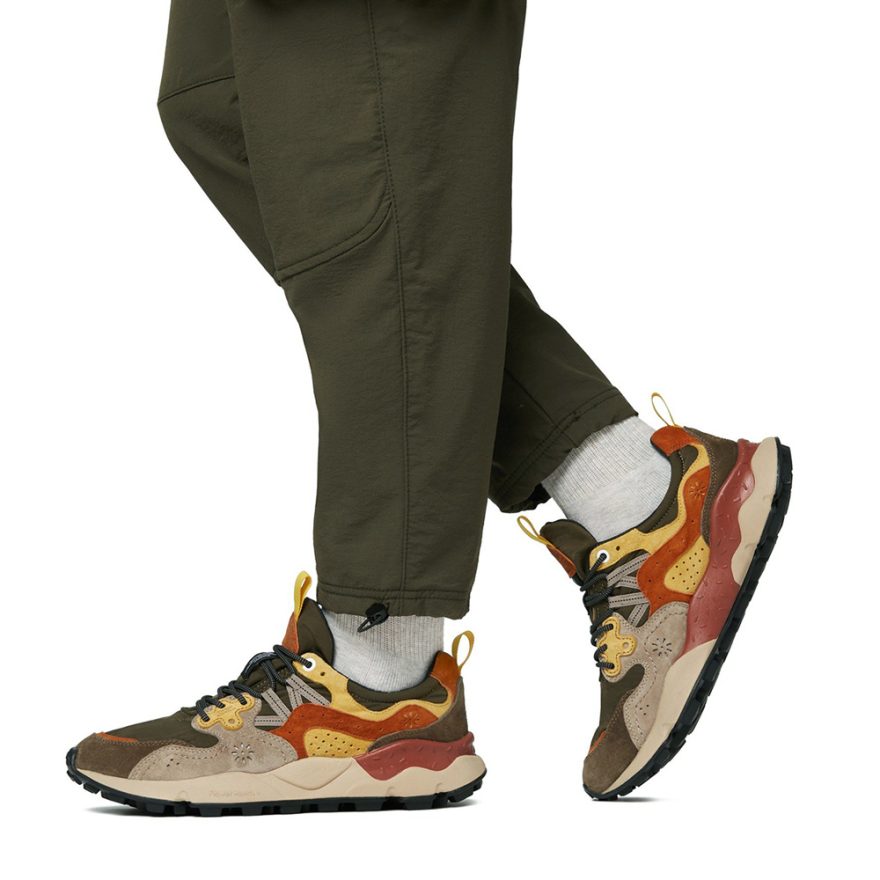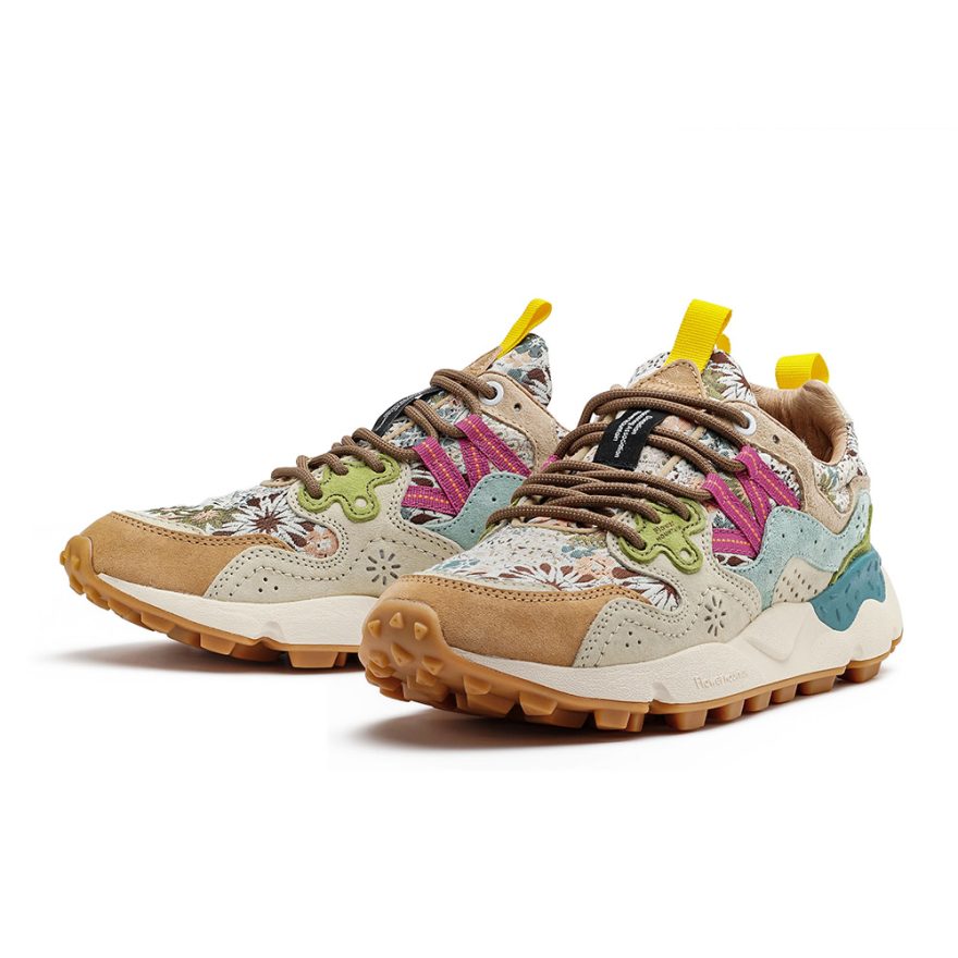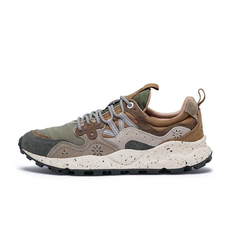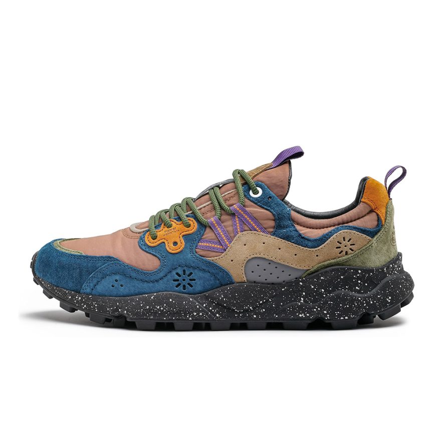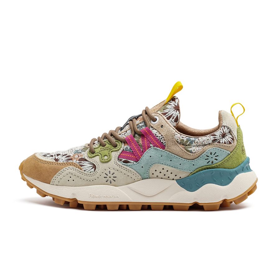 YAMANO3 系列為 Flower MOUNTAIN 品牌代表性的鞋款之一,以其獨特且引人注目的設計著稱,具有大膽的顏色組合、自然靈感的圖案以及不同材質的搭配。鞋款融合了自然元素與日本設計風格,體現了Flower MOUNTAIN 將自然與都市時尚相結合的理念,另外在功能性方面亦有著墨,利用不同科技材質來打造鞋面、鞋墊、中底等區域,注入更多符合現代機能需求的設計語言,實現從山野到街頭的無縫轉換。