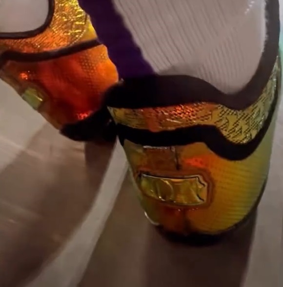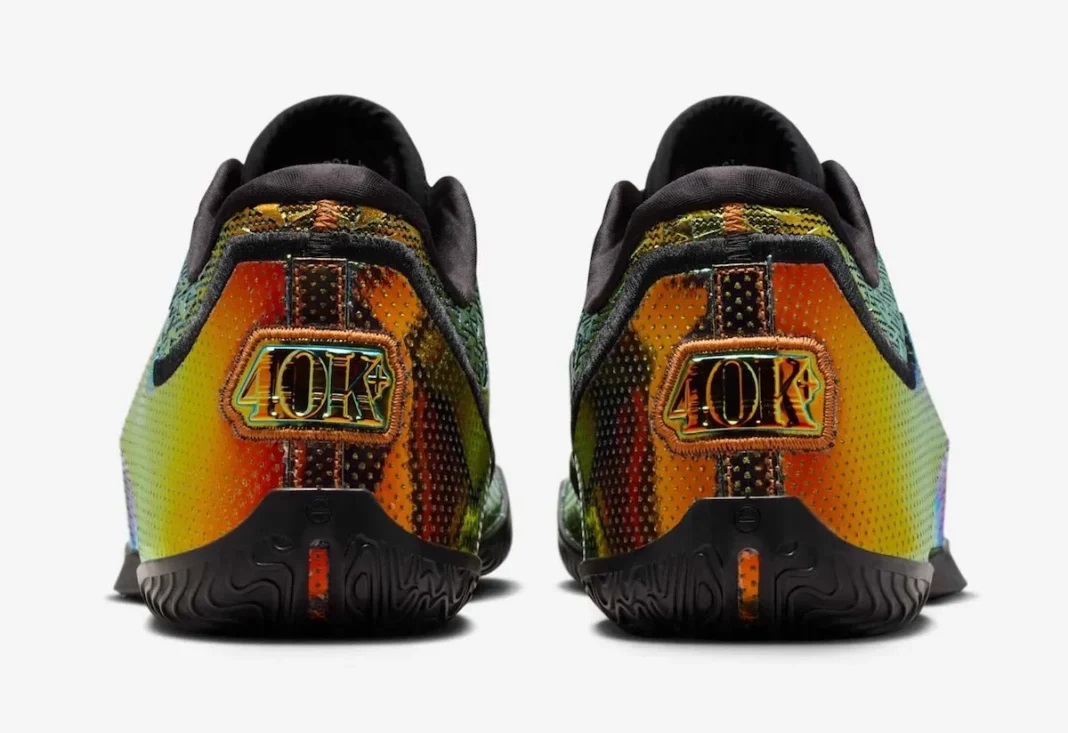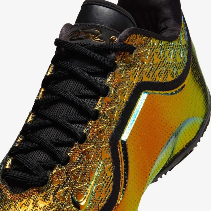 約莫半個月前,LeBron James 曾在限時動態分享一雙閃耀金黃光澤的 Nike LeBron 23,實鞋亮相後不意外地引起注目,當時編輯對於鞋後跟圖案感到好奇,無奈受限於畫素無法清楚辨別;直到近日國外媒體搶先公開了這款配色的產品照,原來後跟標示著 “40K” 字樣,是紀念 LeBron James 生涯四萬分里程碑的主題設計。