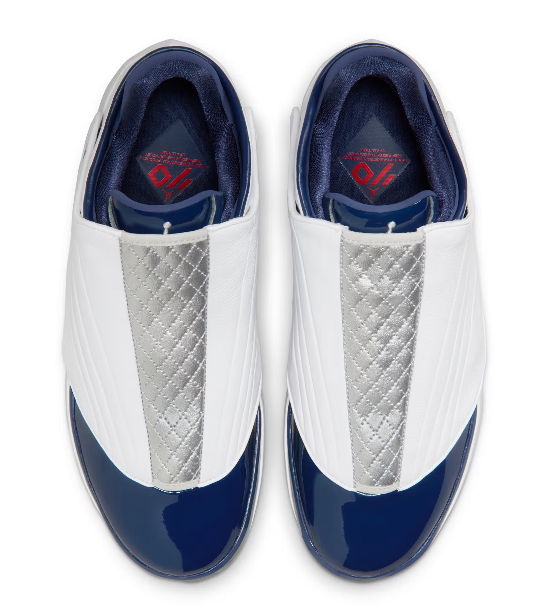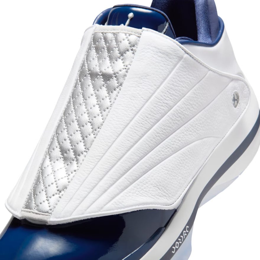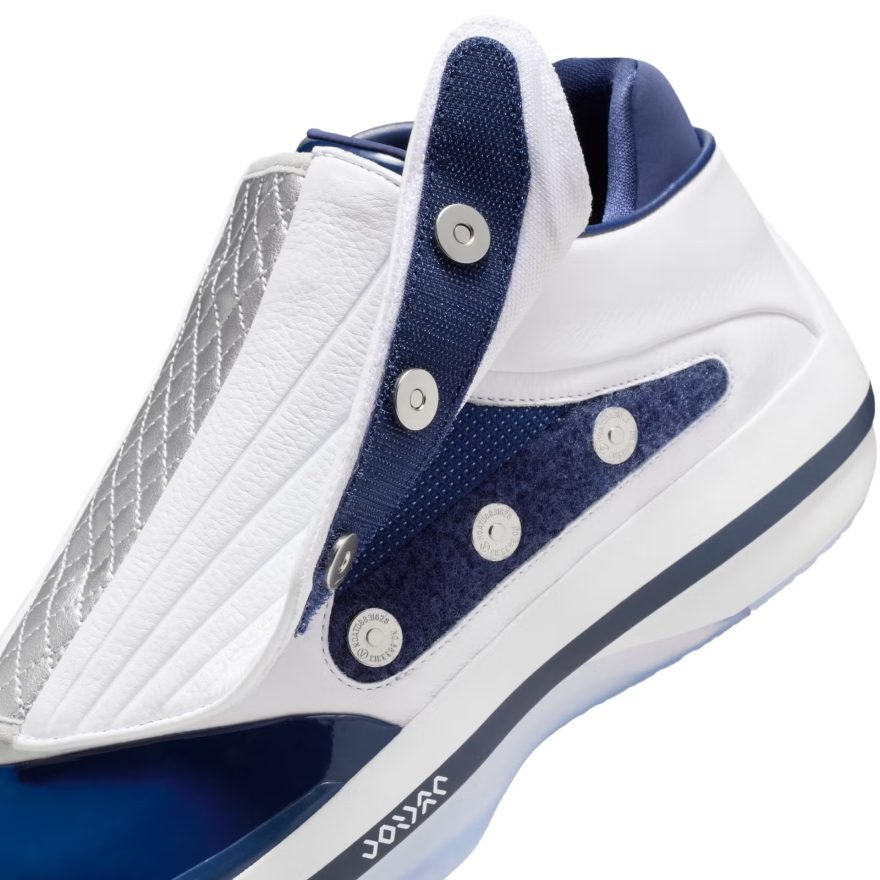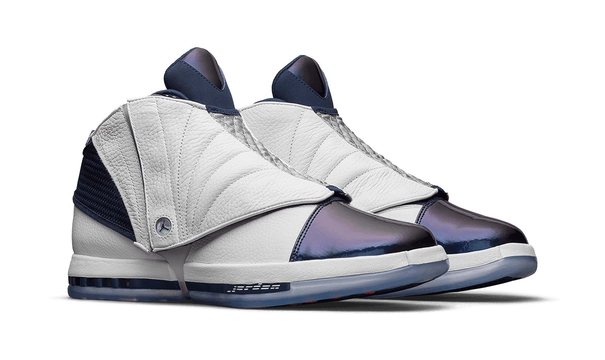 即使沒有翻出 16 代對比也能注意到,設計團隊擷取了數個細節,深化與 Air Jordan 16 的連結,能切換兩種造型的鞋罩之外,鞋頭漆皮、中底側面的 Jordan 壓字也是亮點所在。