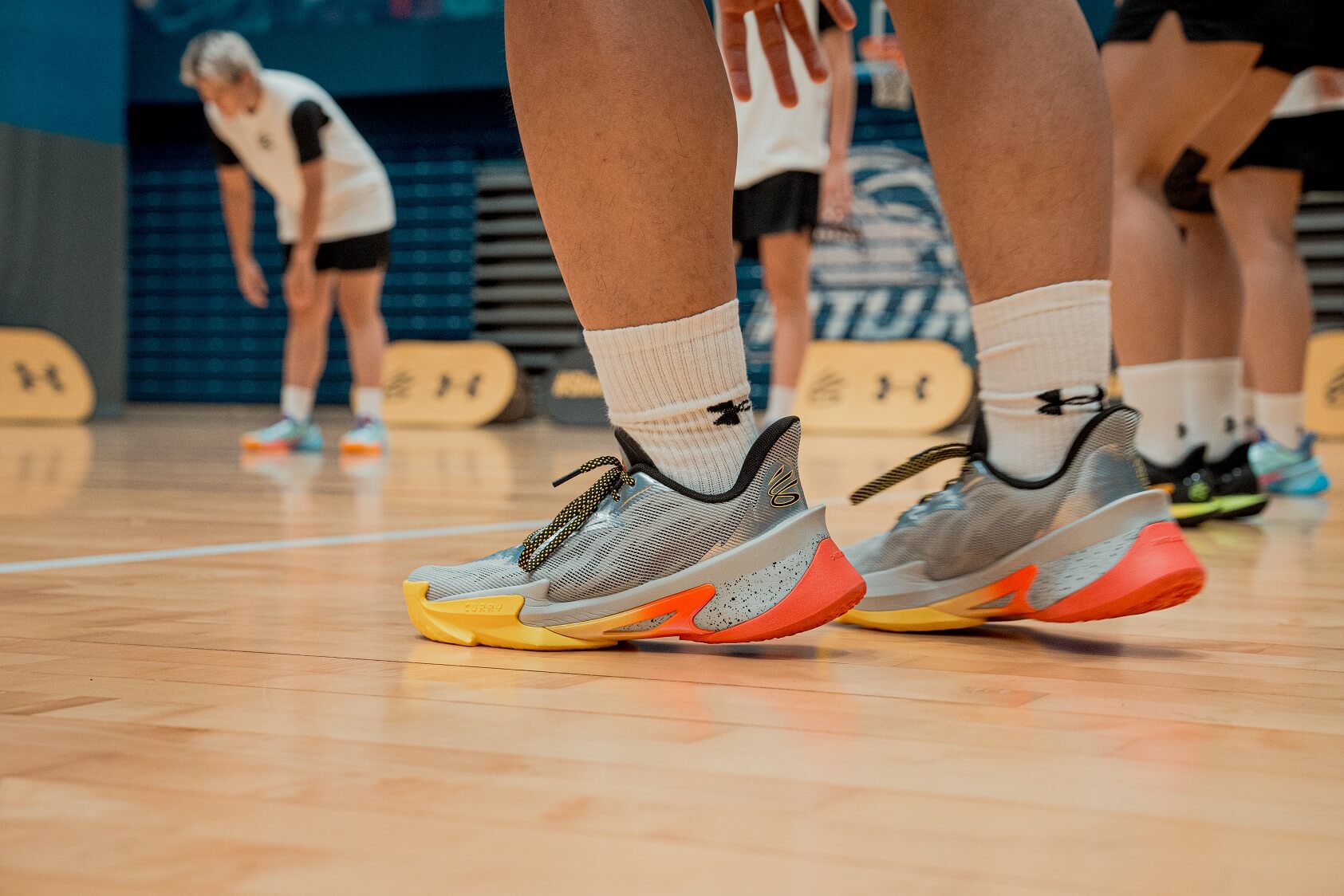 以 Wade 黃冠為教練為首的體能訓練團隊,是來自 New Fitness 新動力體能顧問,他也是中華男籃 2022~2025 的總體能訓練師,此次帶領大家從暖身做操開始,一探運動員如何打好身體基礎,才有本錢追求極致展現;而技術訓練部分,則由 EMPOWER 引爆籃球訓練的 Jackson 林呈宇教練來主導,從 Stephen Curry 與 De’Aaron Fox 場上招牌的動作為發想,設計出一連串實戰感滿點的課程。藉由暖身動作、場上戰術跑動來深刻感受球鞋性能,在 NBA 新賽季來到之際,來感受 Curry Brand 籃球鞋的戰鬥力。