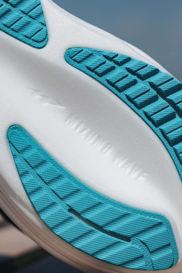 其實在去年底的 The Running Event 上,WAVE RIDER 29 便與 NEO ZENNEO VISTA 2、WAVE SKY 9 等鞋款一同現身,獨特的 Mystery Shoe 配色在中底外層點綴氣泡紋理,正是象徵氮氣發泡材質的導入,不過材質以及調性卻有所不同。相比 NEO 系列那強調鮮明回彈的 TPU 發泡,定位日常慢跑的 WAVE RIDER 29 採用 EVA 為基底,調性相對溫和且穩定,更適合不講求配速的輕鬆課表。如此設定也凸顯了 WAVE RIDER 系列作為「國民跑鞋」的核心,以舒適、安穩的特性,幫助各種程度的跑者累積里程。