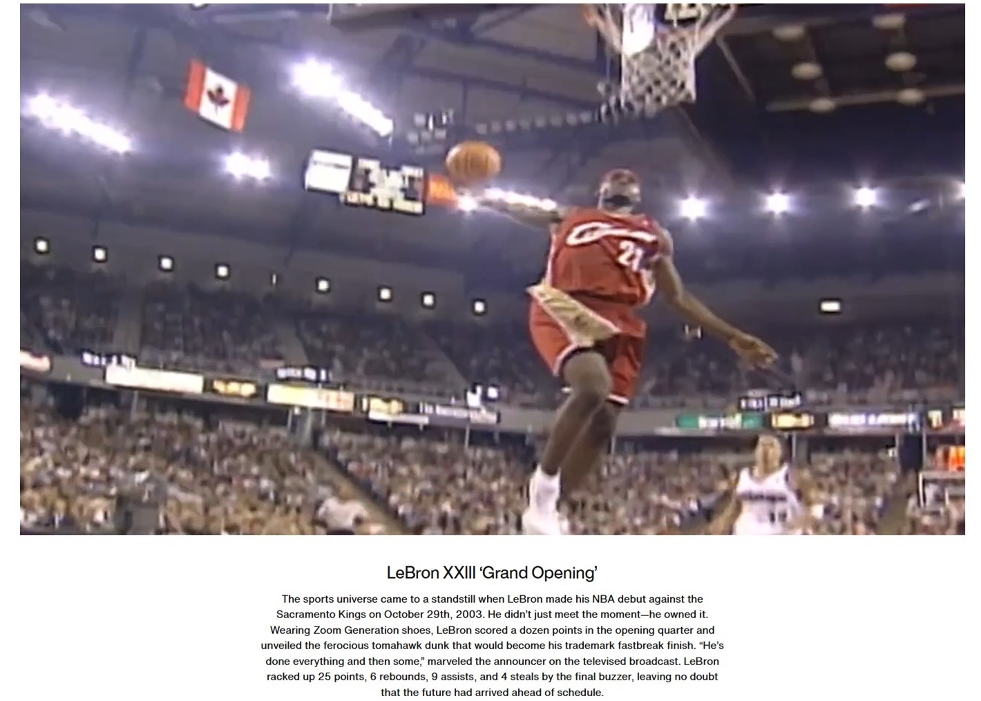 Nike.com 網頁上展示的影片,也是當時 LeBron James 在沙加緬度國王隊主場亮相的精華。