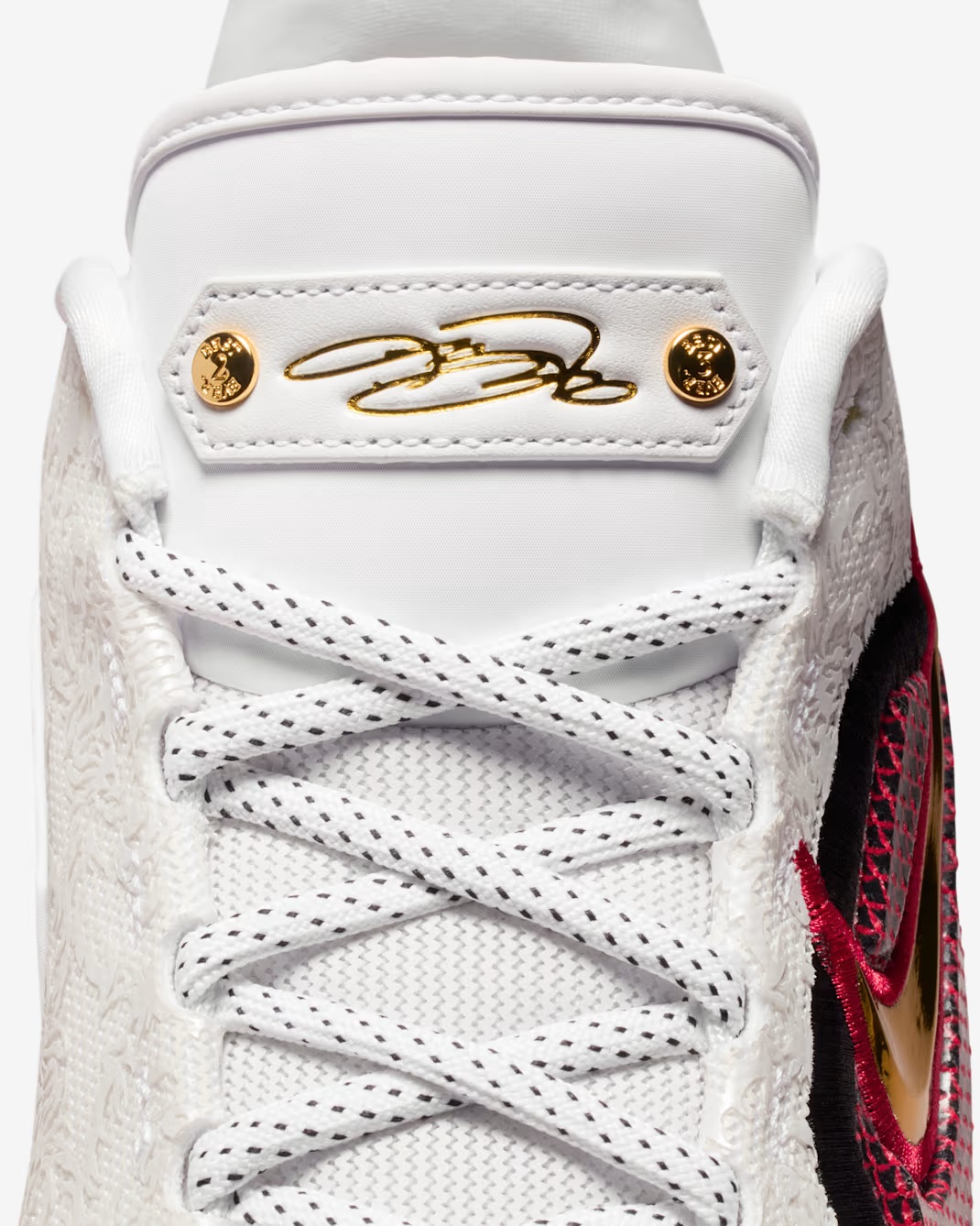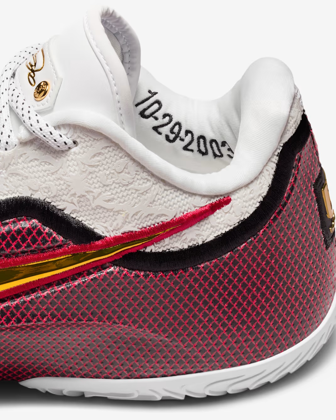 然而…事情看起來並非如此,首先 Nike 官方描述有「Grand Opening 靈感來自於 LeBron 廣為人知的職業首秀,以及他的首款簽名鞋。」這麼一段話,確實有擷取 Air Zoom Generation 的元素,但沒有特指 ‘1st Game’ 樣式;同時可發現鞋內襯繡的日期為 10-29-2003,是 LeBron James 當年 NBA 初登場客場與國王隊交手的日子,而該役他著用白黑紅配色。