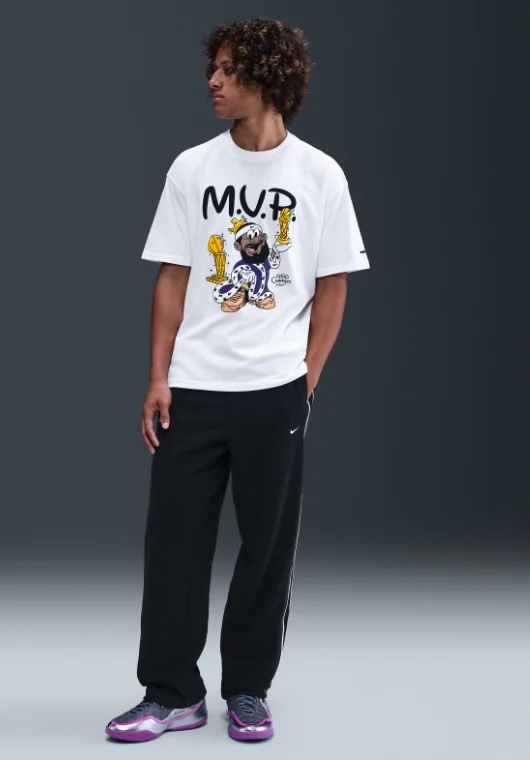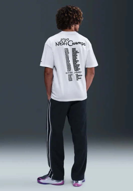 LeBron XXIII 每一款市售配色都有相對應的主題 T-Shirt 和小飾品,其中被稱為 ‘Bubble Boy’ 的即是聚焦當年在泡泡園區贏下總冠軍,能看到這組照片中模特兒身穿 ‘Bubble Boy’ 短袖上衣,腳下著用還未正式公開的新配色。雖說 Nike 的這類穿搭型錄並非總會衣、鞋搭成套,不過這雙 LeBron XXIII 據傳正是 ‘Bubble Boy’ 本尊。