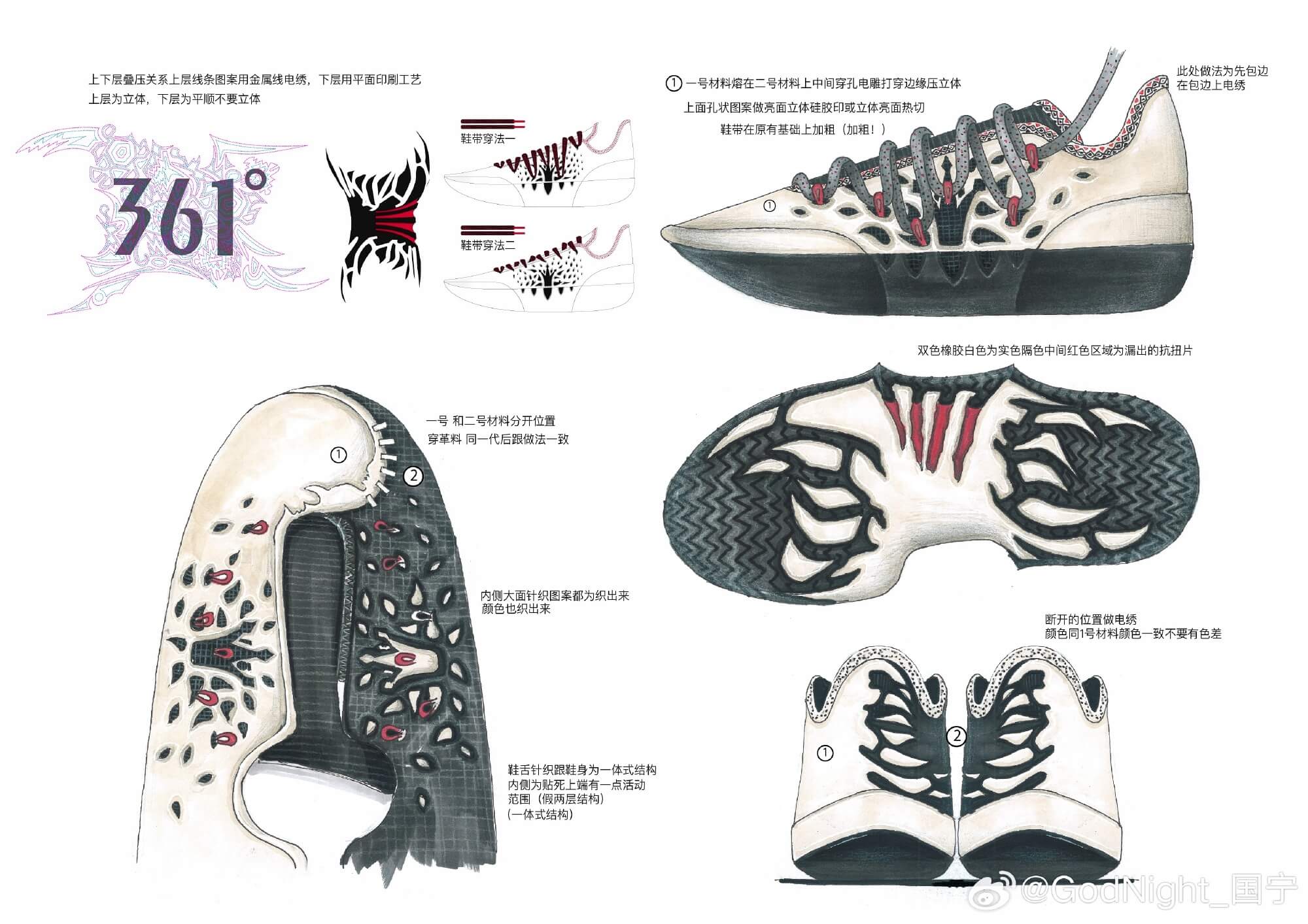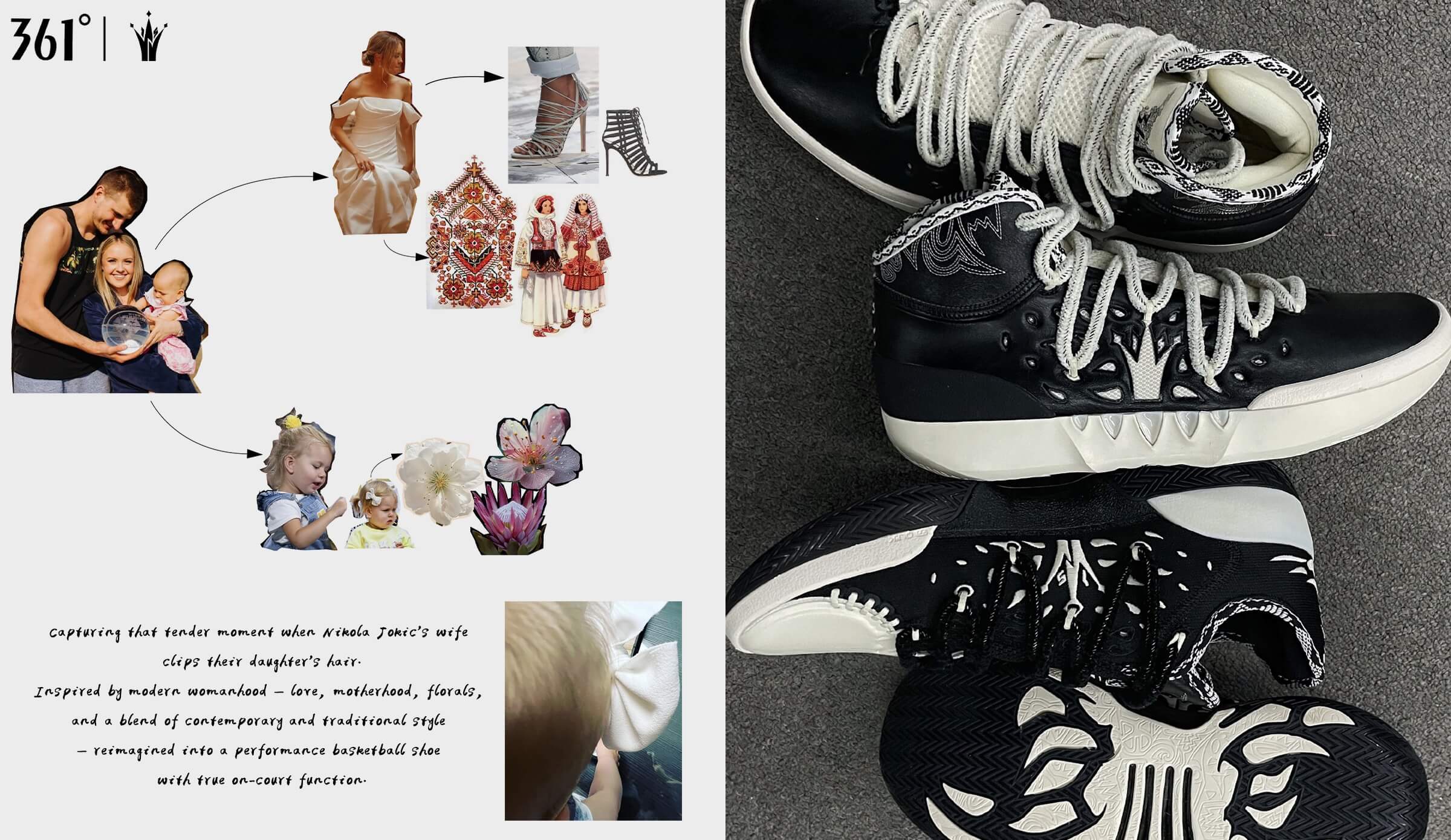 361° 設計師張國寧 (@GodNight_国宁) 公開了 Joker 2 的設計靈感,與 1 代帶入大量馬靴元素不同,這次 Joker 2 以「場下的 Nikola Jokić」為靈感帶入,從女兒、老婆這些家人、家庭生活中找尋設計元素,講明白一點,Joker 2 整雙鞋的外型靈感,源自於他老婆的全綁帶跟鞋。