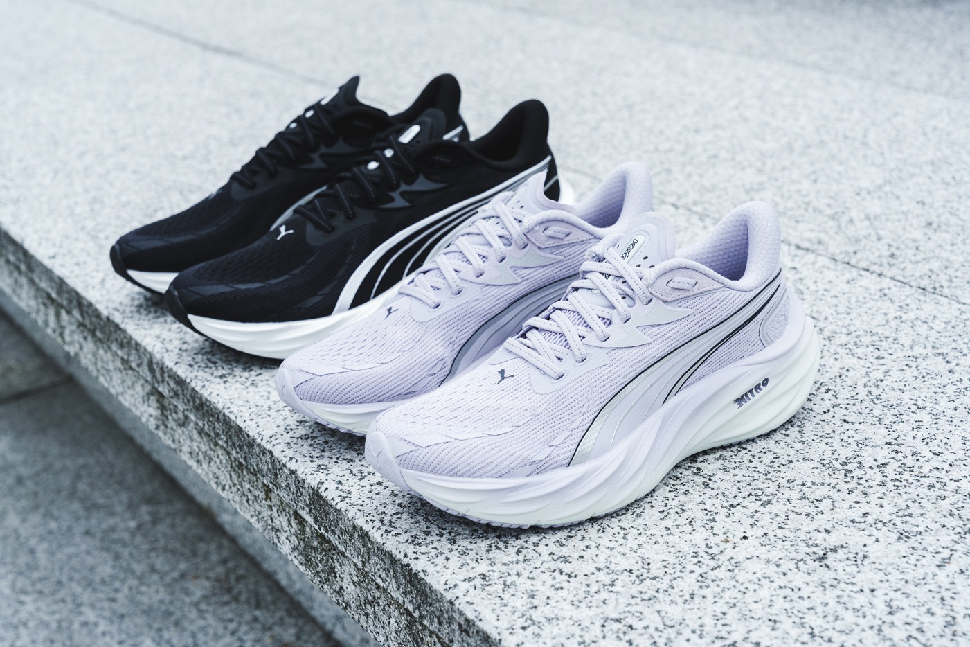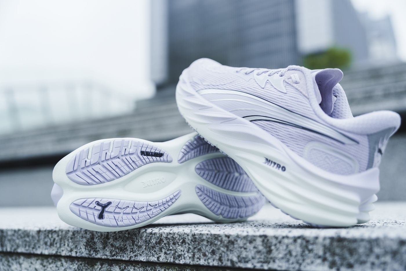 PUMA 以 NITRO™ 氮氣中底科技引領專業跑鞋市場新世代,NITRO™ 氮氣科技運用氮氣不易熱脹冷縮的特性,將液態氮注入高品質物料中進行發泡,使中底形成肉眼不可見的氣泡結構,帶來「輕量」與「高緩衝」並存的穩定腳感。NITRO™ 比前一代更輕 13%、能量回饋 85%、更緩衝 20%、增強緩震效果提升舒適度,在減輕重量的同時仍保有高效能量回饋與穩定支撐,實現真正的輕盈練跑。