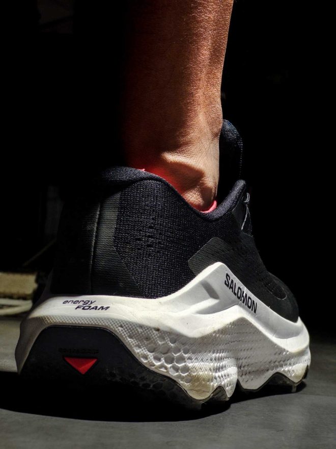 試穿時對於「SALOMON 鞋型偏窄」的印象有點舉棋不定,但是鞋面的機能網布相對柔軟,加強的貼片其實也不壓迫,最後選擇原尺寸對我來說是正確的選擇(之前 SALOMON XT-6 穿 US10,SALOMON ULTRA GLIDE 3 我穿 US9.5 原尺寸)。而開箱之後立馬就是十幾公里的還帶爬升下降的實戰,舒適性與功能性都馬上接軌,幾乎不需暖機即可上陣。讓人對 ULTRA GLIDE 3 的設計成熟度印象深刻。