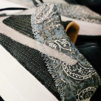 ANT KAI 表示,Air Jordan 40 ‘Bandana Boro’ 使用了丹寧布、頭巾縫製而成,並且在楦頭、鞋跟的地方加入了刺繡圖樣,鞋底另外染色,仔細看的話,會發現其實鞋款使用了左右不對稱的配色手法。