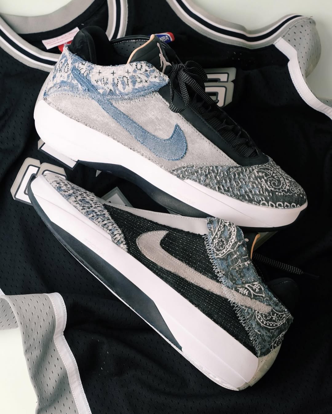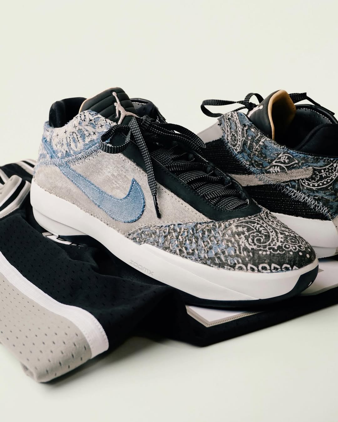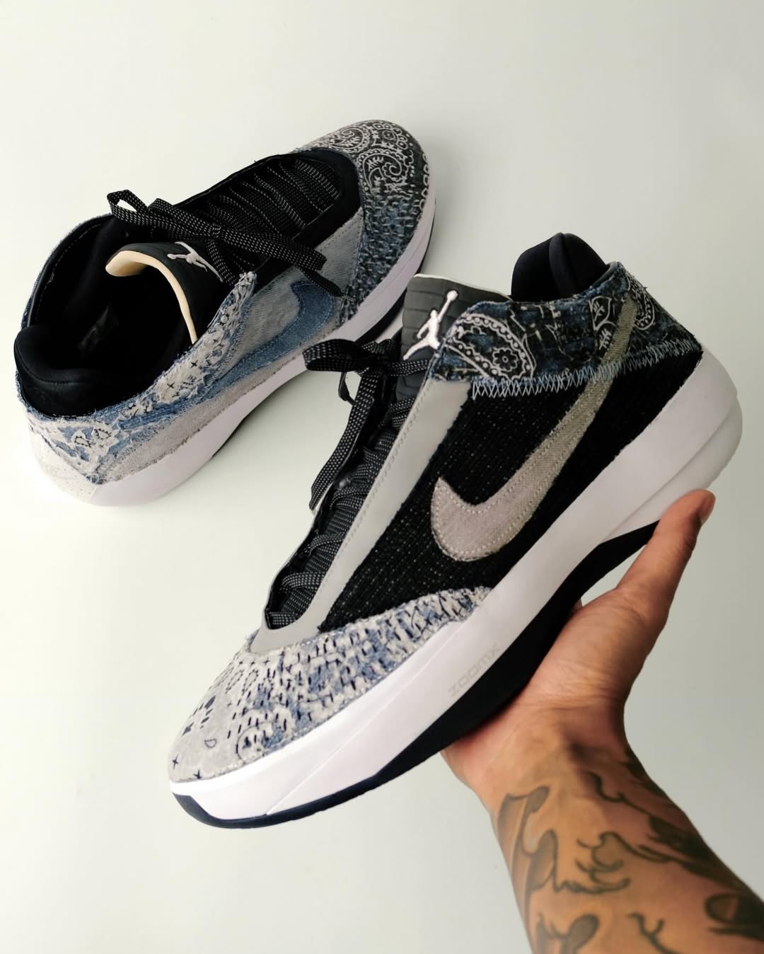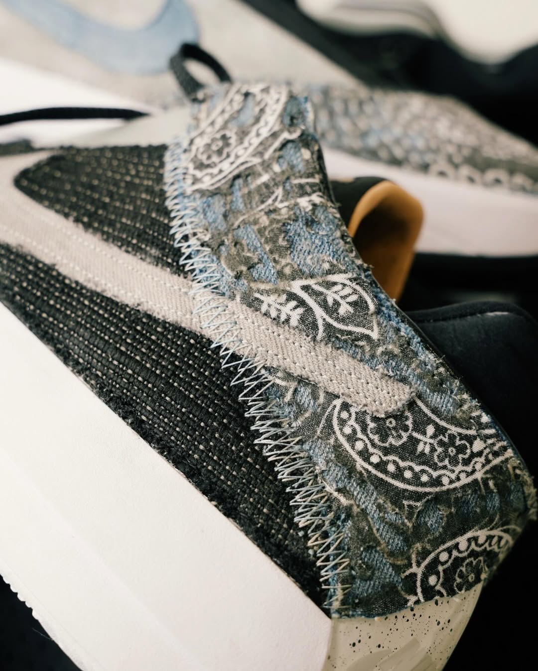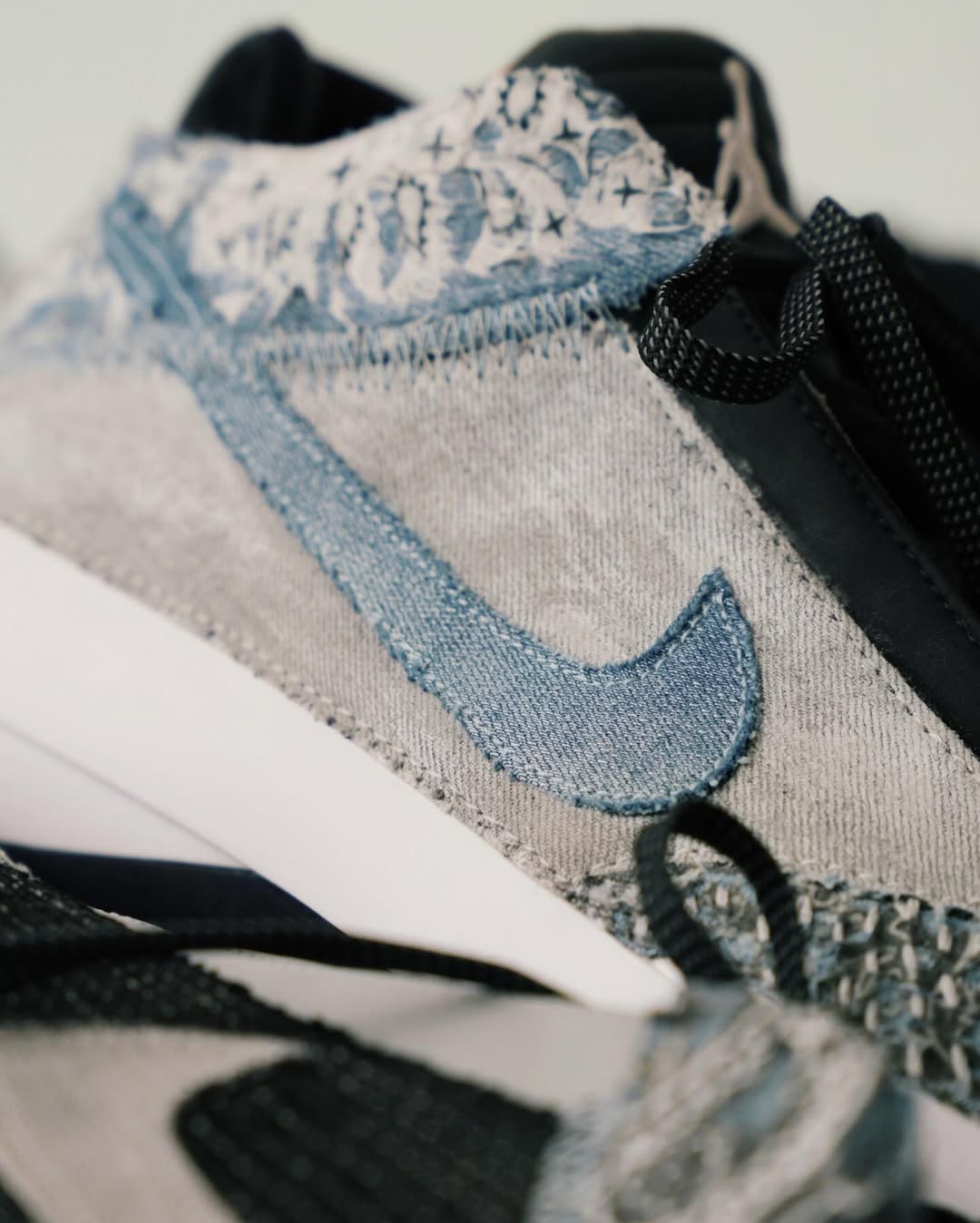 ANT KAI 表示,Air Jordan 40 ‘Bandana Boro’ 使用了丹寧布、頭巾縫製而成,並且在楦頭、鞋跟的地方加入了刺繡圖樣,鞋底另外染色,仔細看的話,會發現其實鞋款使用了左右不對稱的配色手法。