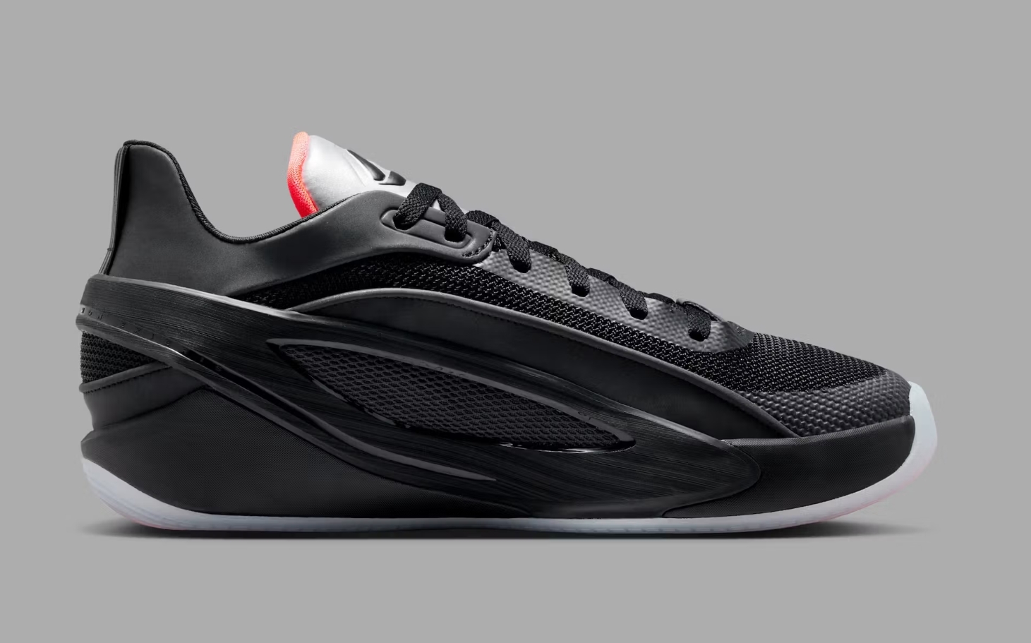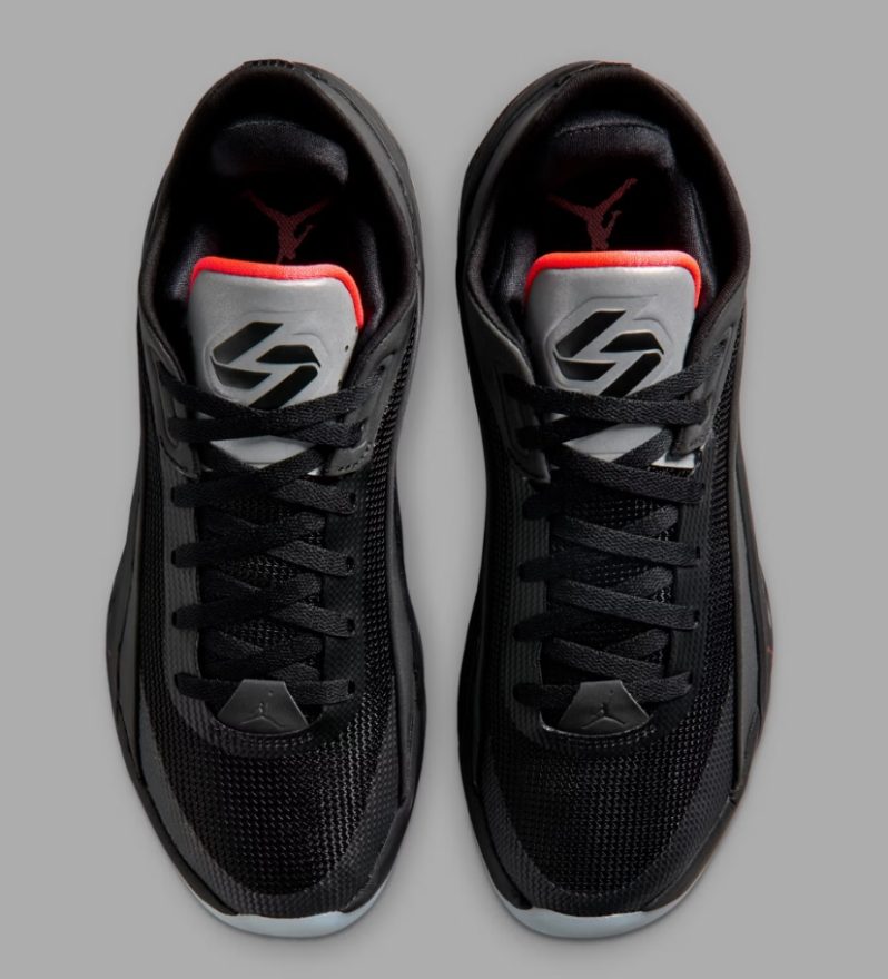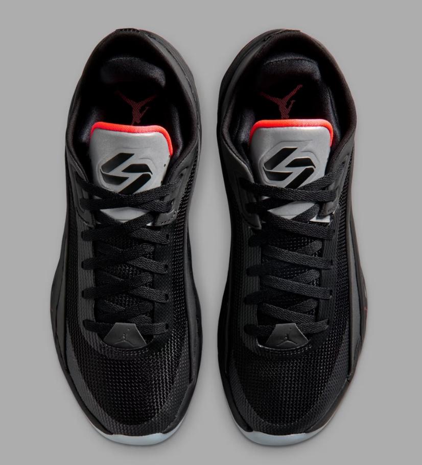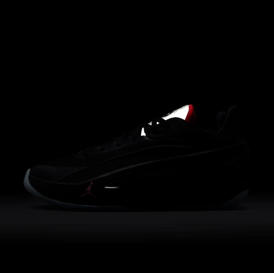 這次亮相的 Jordan Luka 5 以黑色打底,鞋舌等細節處帶有銀灰、紅色搭配,有那麼一點點 Jordan Brand 招牌配色的味道,該配色採用半透明膠底,鞋舌帶有反光效果。