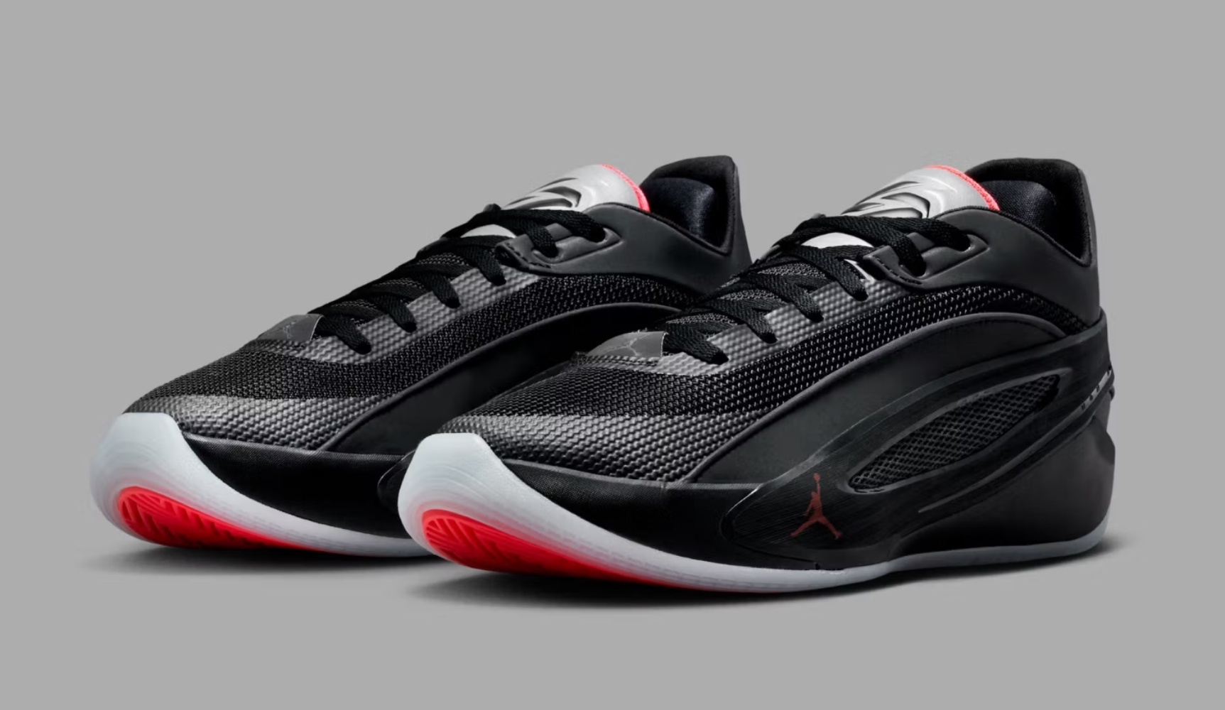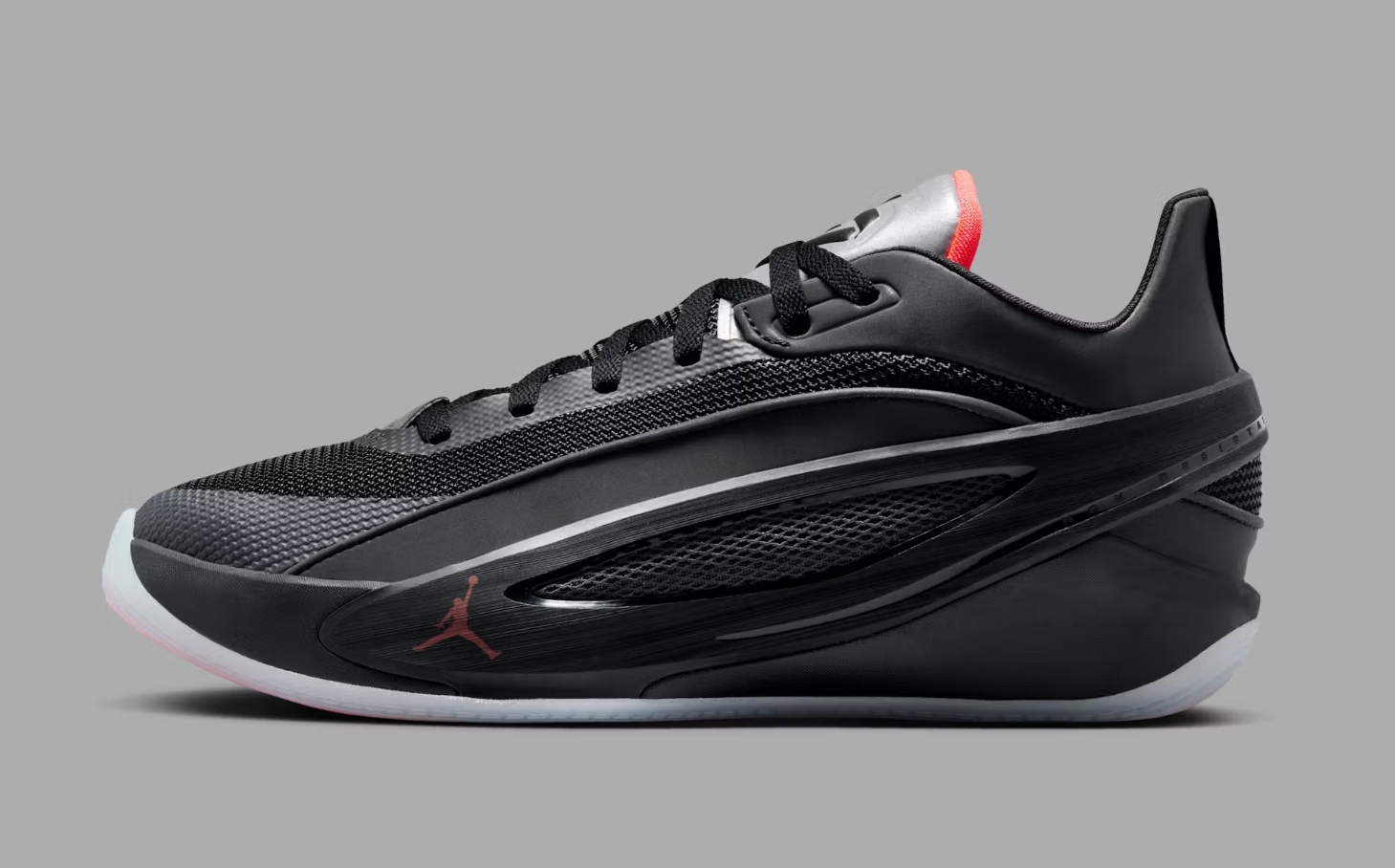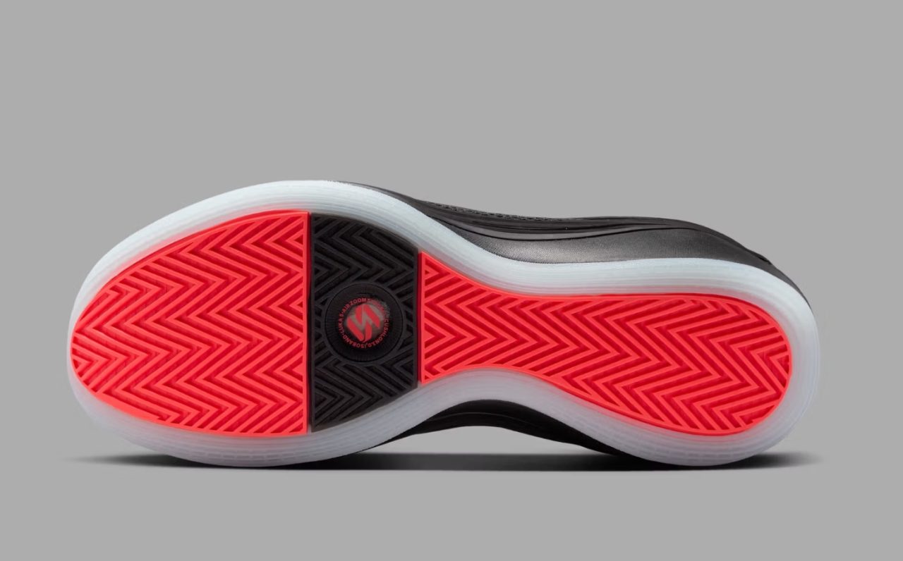 這次亮相的 Jordan Luka 5 以黑色打底,鞋舌等細節處帶有銀灰、紅色搭配,有那麼一點點 Jordan Brand 招牌配色的味道,該配色採用半透明膠底,鞋舌帶有反光效果。