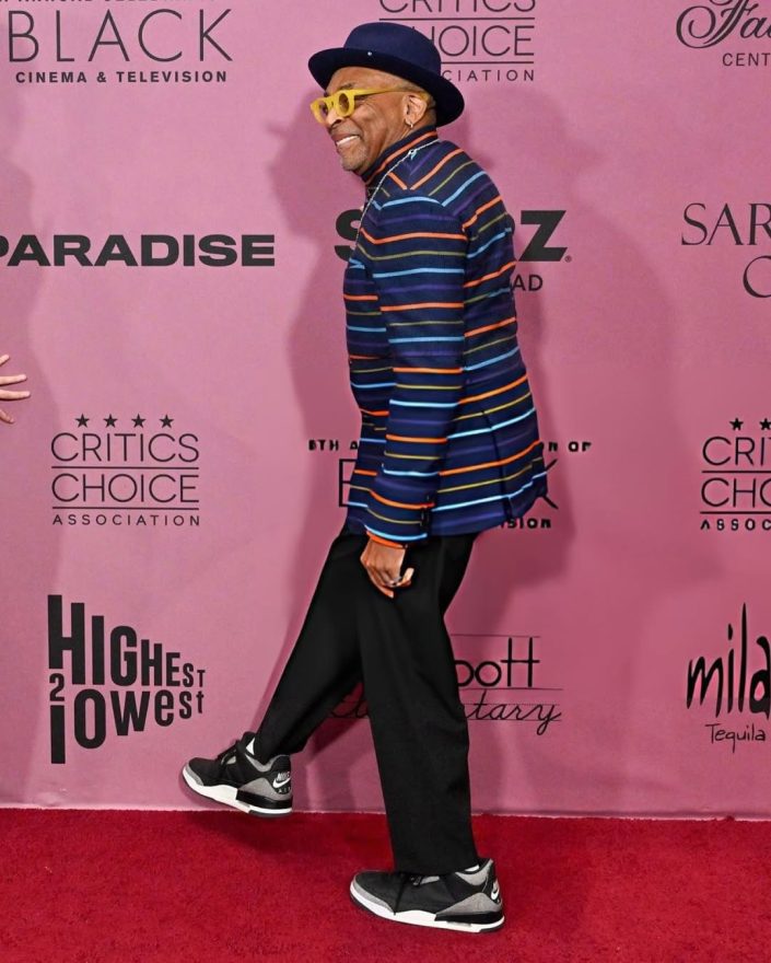 Spike Lee 近日出席美國影評協會的 Celebration of Black Cinema & Television 活動,穿上了黑色版本的 Levi’s x Air Jordan 3,這雙聯名三代在用色、設計上可說是承襲經典,包含後跟的 Nike Air「老屁股」,讓人一眼想到「黑水泥」。