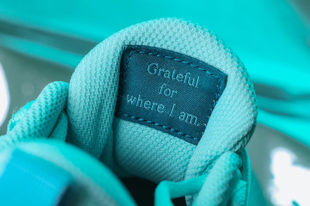 • 鞋舌內布章 “Grateful for where I am.” 字樣
