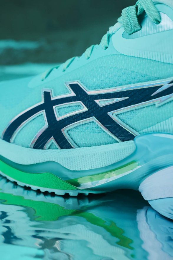 河村勇輝 在比賽中瞬間加速啟動、轉身甩開防守的招牌動作,就好比一亮即逝的閃電般難以捉摸,亞瑟士設計團隊以此為靈感形塑 SWIFTACE 的疾速本色,鞋身虎爪標、鞋領拉環、後跟穩定片等細節都能發現 ㄣ 形線條,加上低筒鞋身、底盤前後分離式的設定,光是外型,就能先讀出那股鮮明的速度取向。