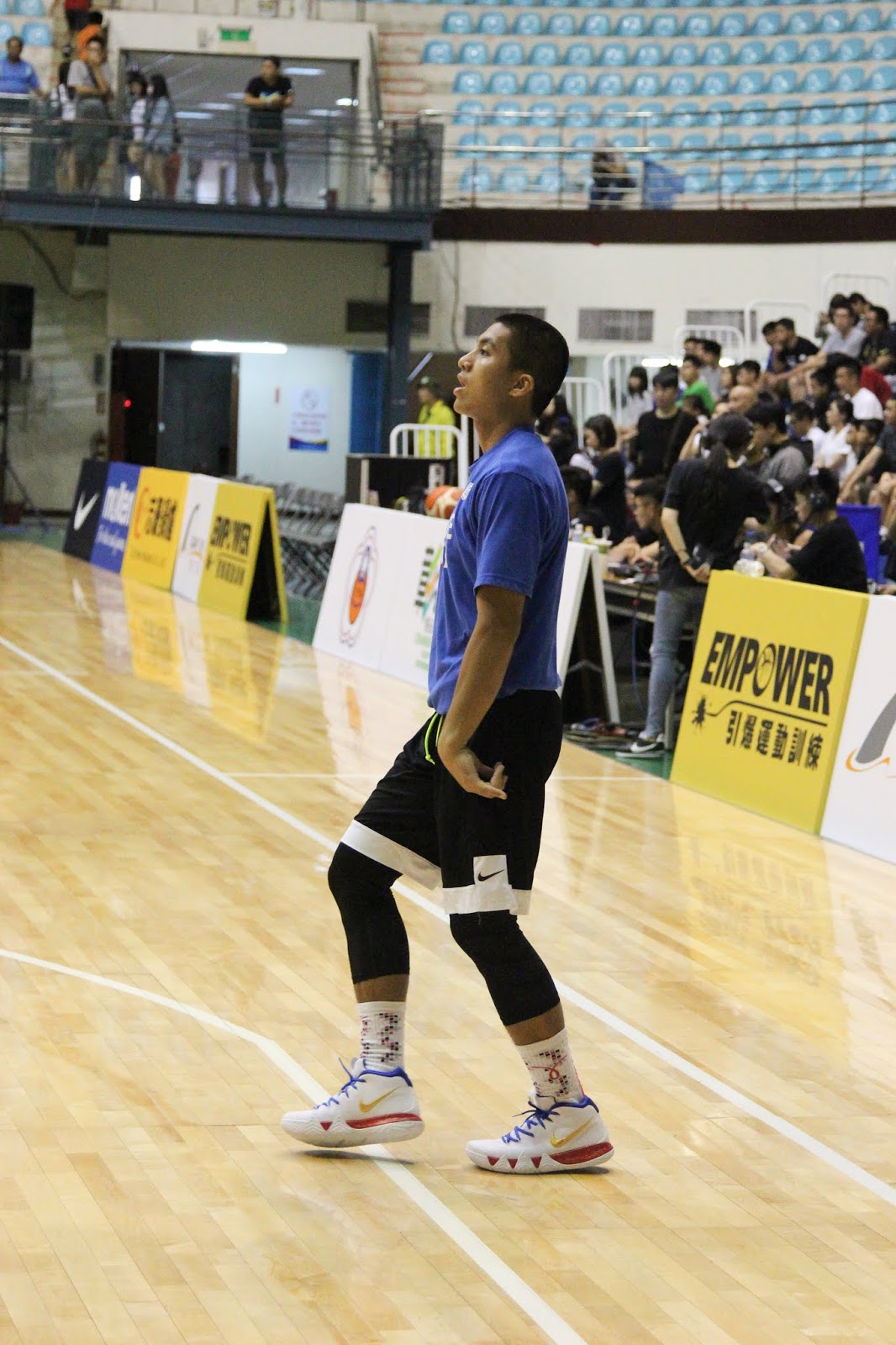 首先是高國豪的部分,相信許多人都是衝著他來的,這場比賽感覺累了水準有失以往,但是腳下的鞋履還是十分吸睛,Nike Kyrie 4 id "Chinese Taipei",請容許我這麼稱呼它。過去都希望國家隊球員能夠穿上代表國家配色的鞋款,今年終於實現了。( 其他可參考 Bounce 的報導 )