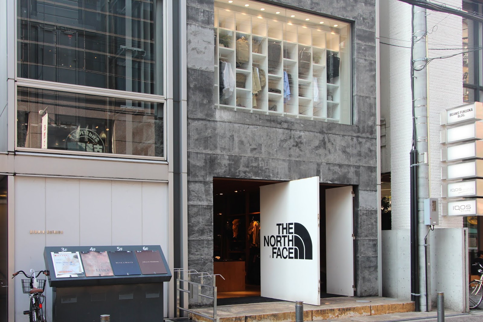 The North Face 的大門設計很有趣,以轉動的方式開關,開店時與關店方向垂直。店內二樓同樣販售紫標系列商品,及福岡店限定服飾,對品牌愛好者來說走走是一定要的。但如果你在店家找不到尺寸怎麼辦?