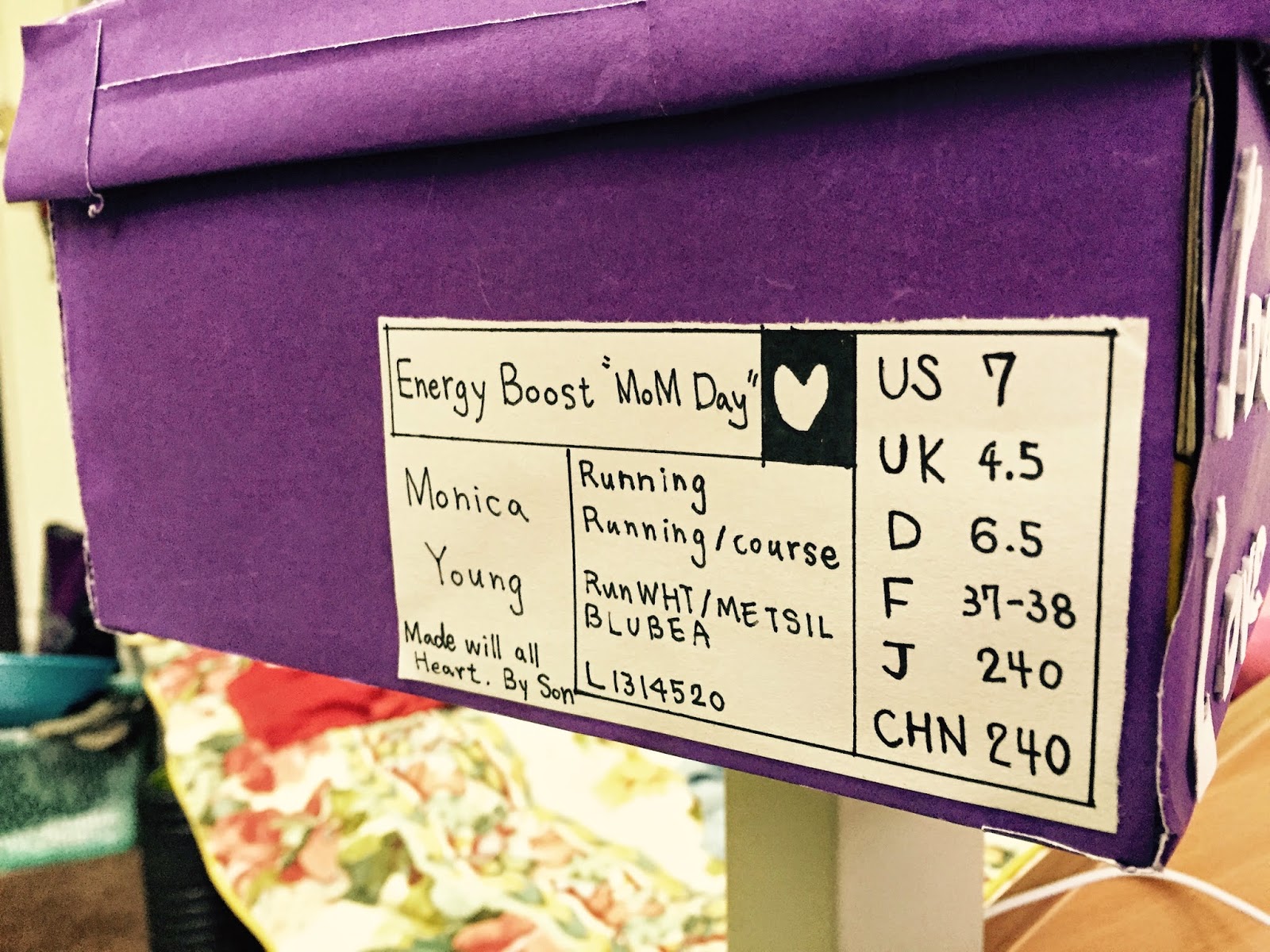 這次手做鞋盒雖然老媽好像已經猜到了,計畫又不夠周詳,沒有騙到她,但看到他穿上鞋子開心的樣子,好像一切都值得了。