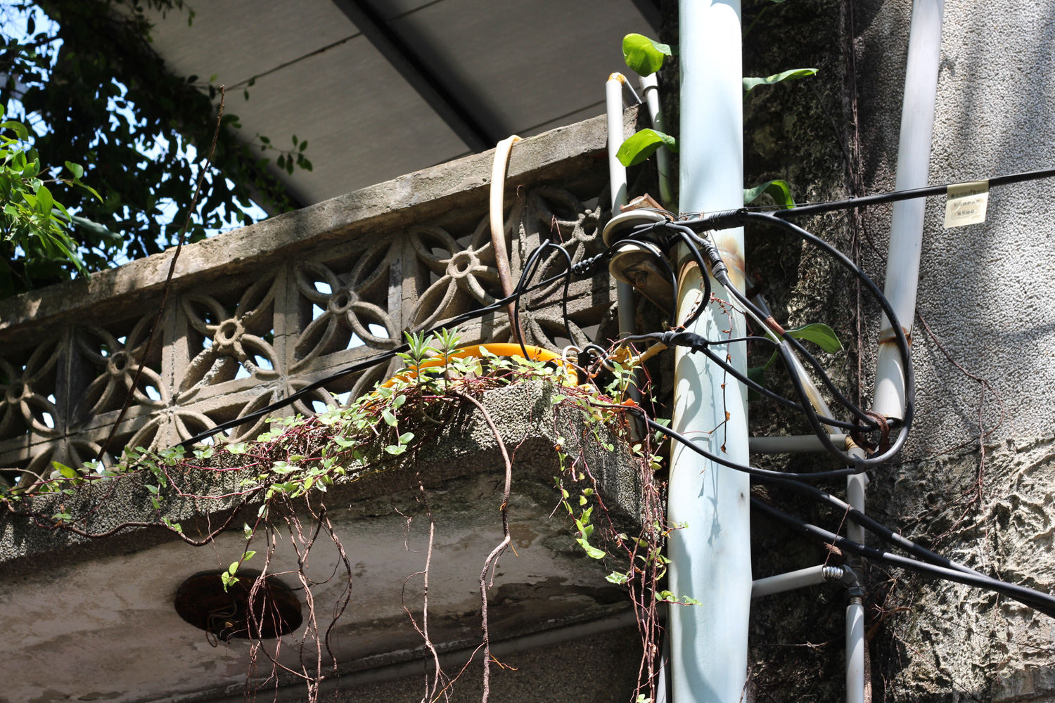 橘紅色的地磚與紅色鏽蝕的欄杆充滿歲月的痕跡。