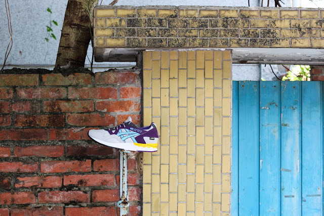 鞋子後半段的黃紫搭配是不是很容易讓人想起兒時爬牆的童趣呢?現在也很難看到這種磚牆了呢!