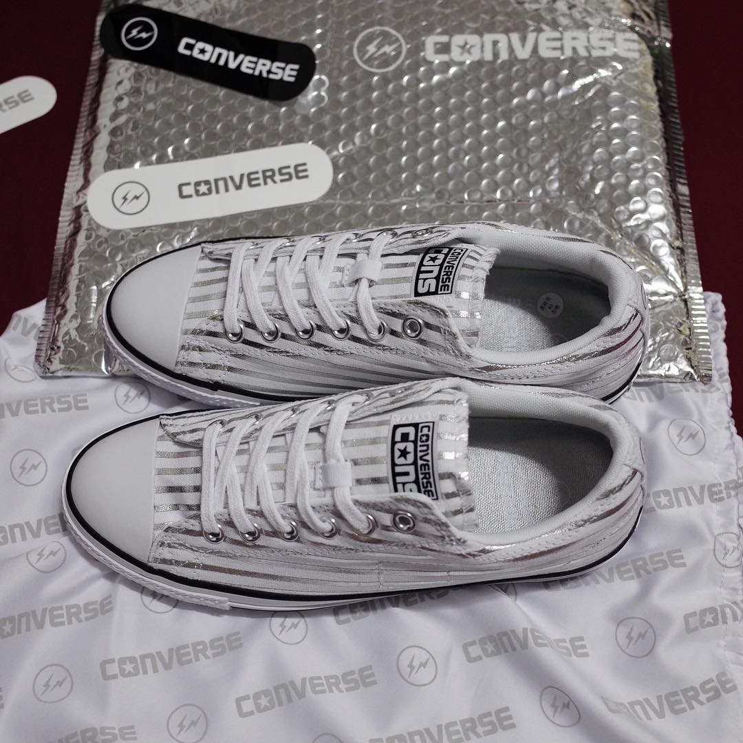 這次Converse Cons與Fragment Design的合作一共推出黑、深藍、白、條紋銀與條紋金五個顏色,比較可惜的是,包裝上面與一般款無意,就是很普通的Converse鞋盒