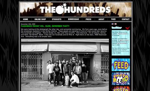 The Hundreds將自身的生活週遭,取材自八零年代始,龐克運動之青年社群,為相互連結所創立其自發性龐克刊物(zine)的模式,於03年將其概念率先以網路的形式作為主要媒介,這般傳遞的動作將自身眼目所見,逐漸連結到全世界,在舊有文化的承襲與新式文化的脈絡上早已成為眾多品牌的指標性代表。